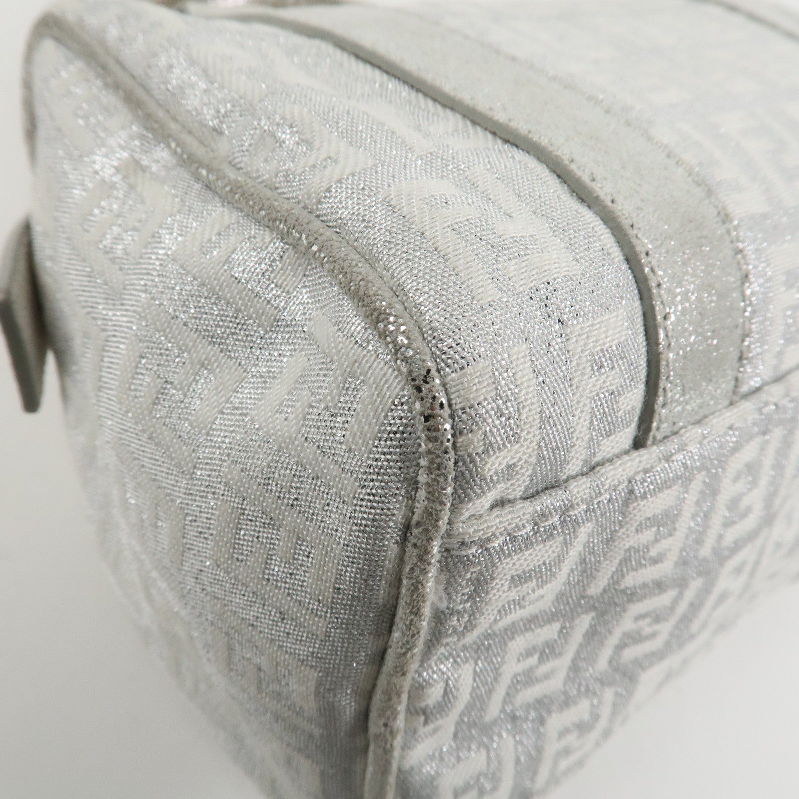 FENDI Zucchino Canvas Leather Mini Boston Bag Silver White 8BL071 Used