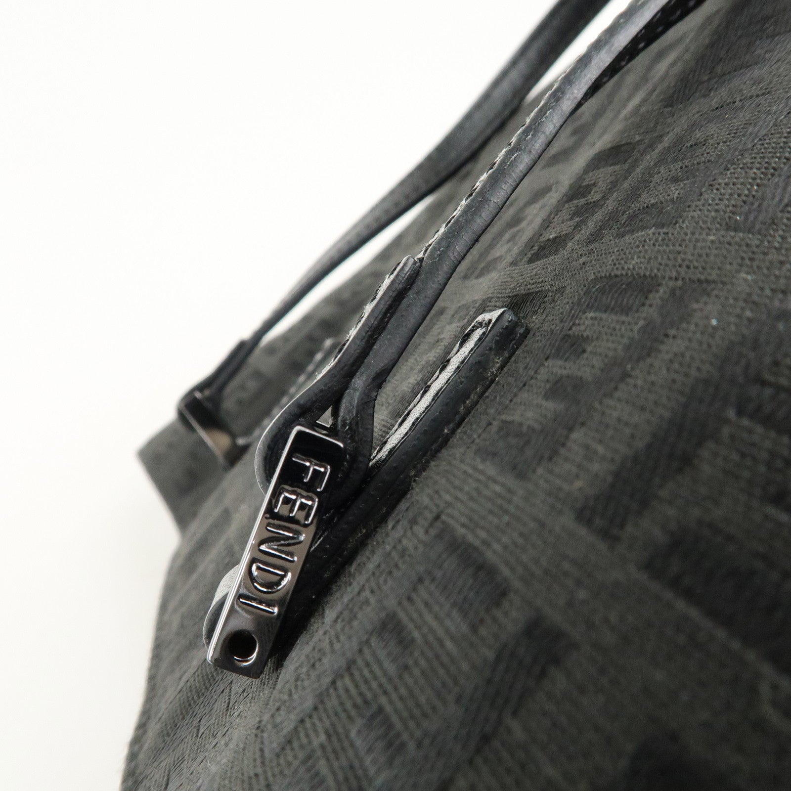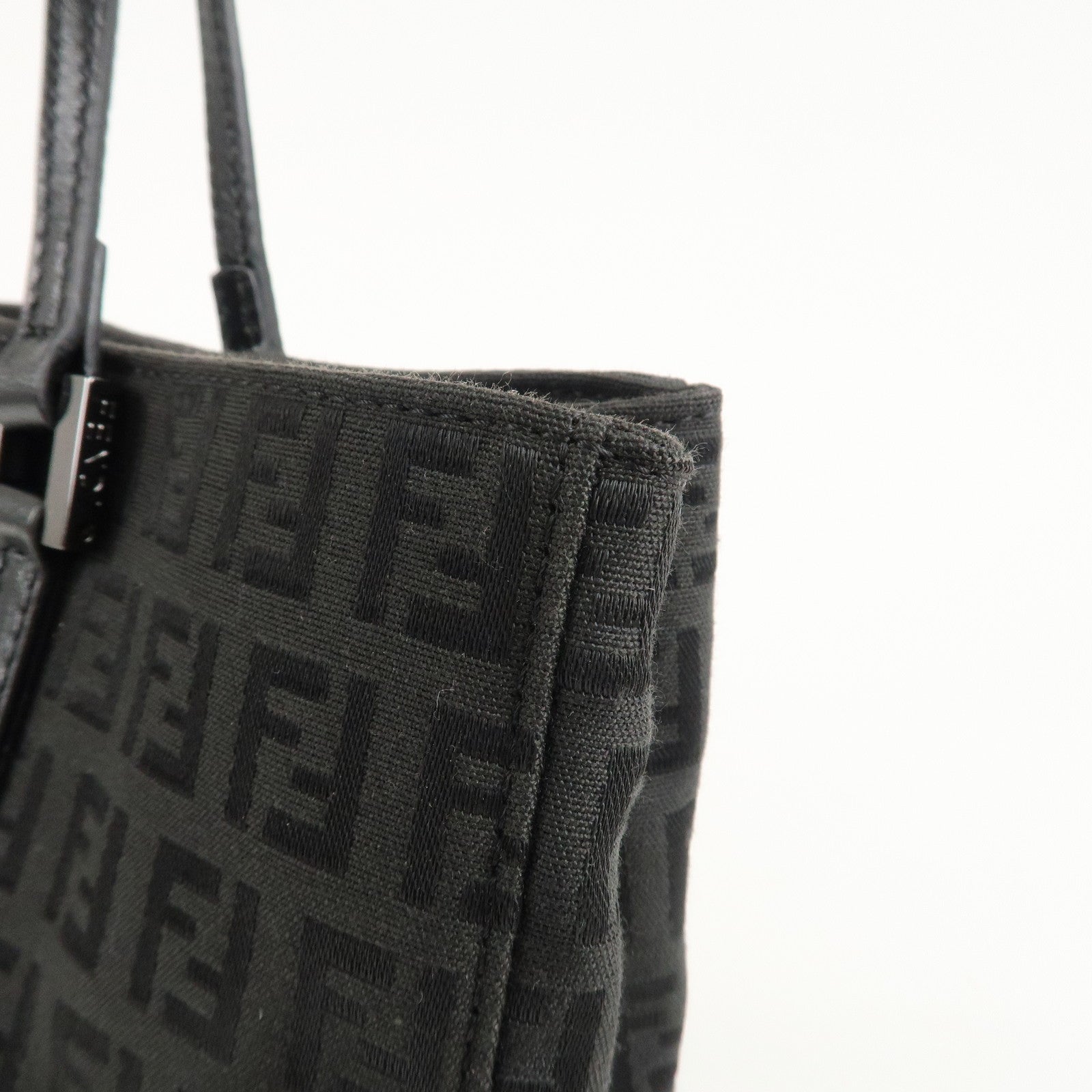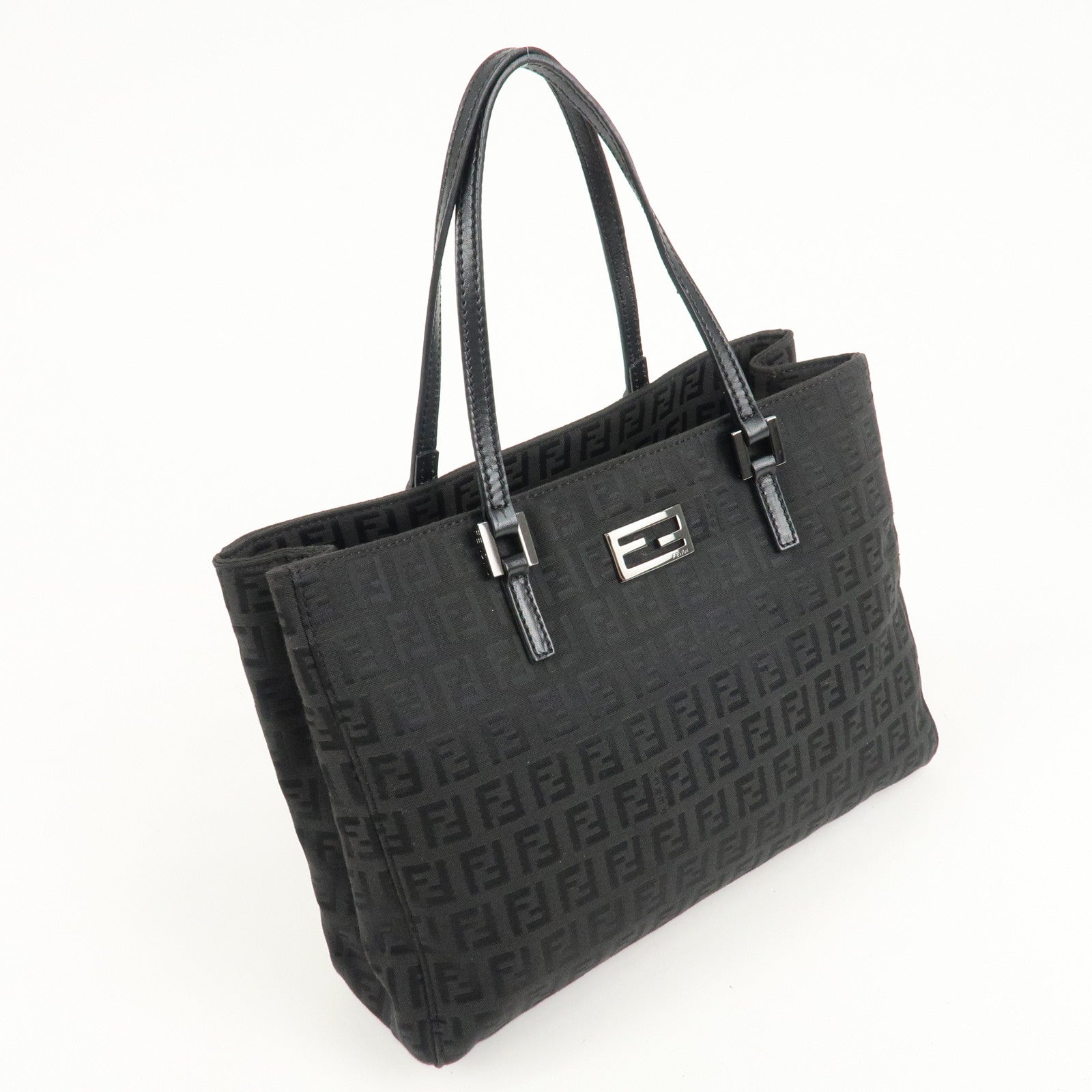FENDI Zucchino Canvas Leather Tote Bag Hand Bag Black 8BH132 Used