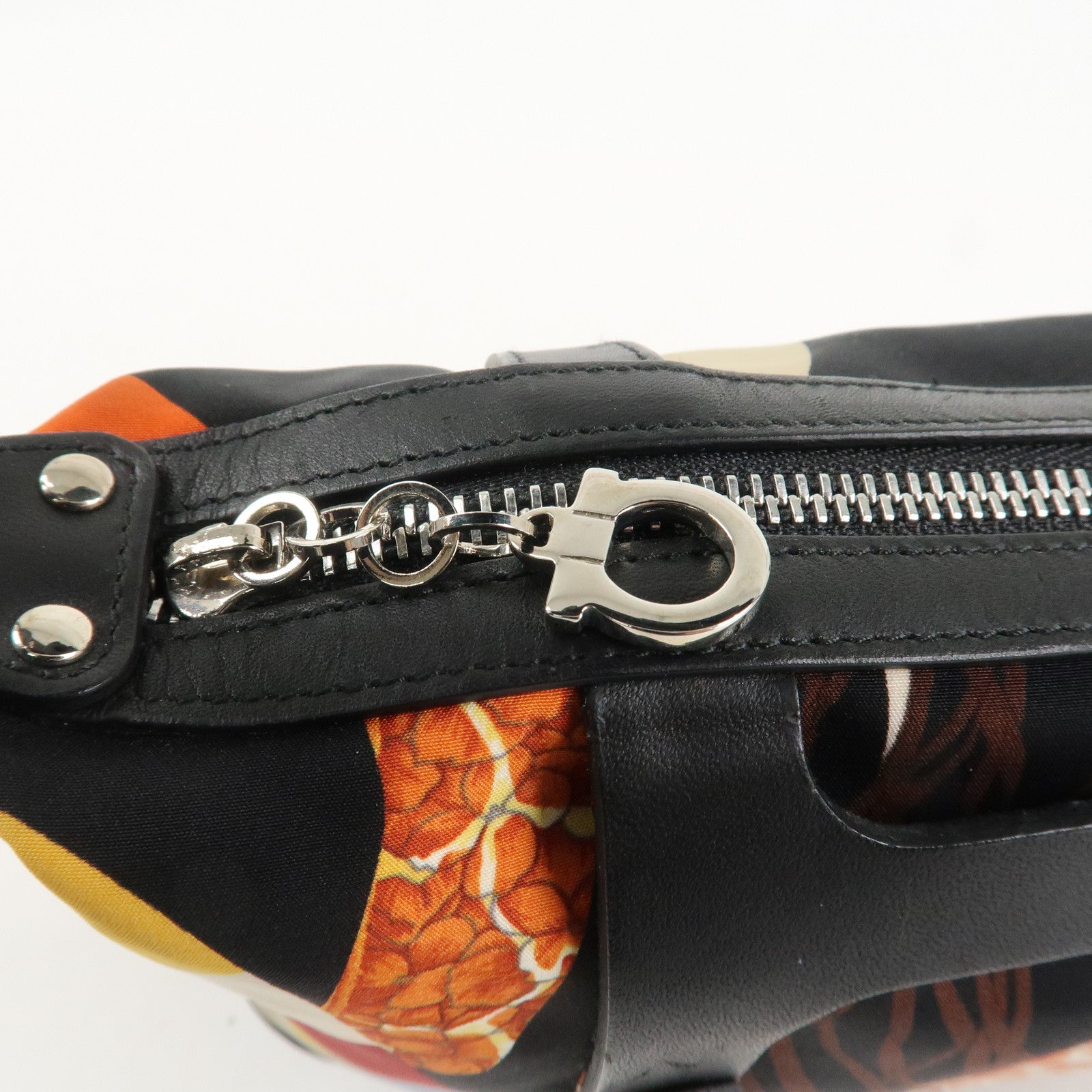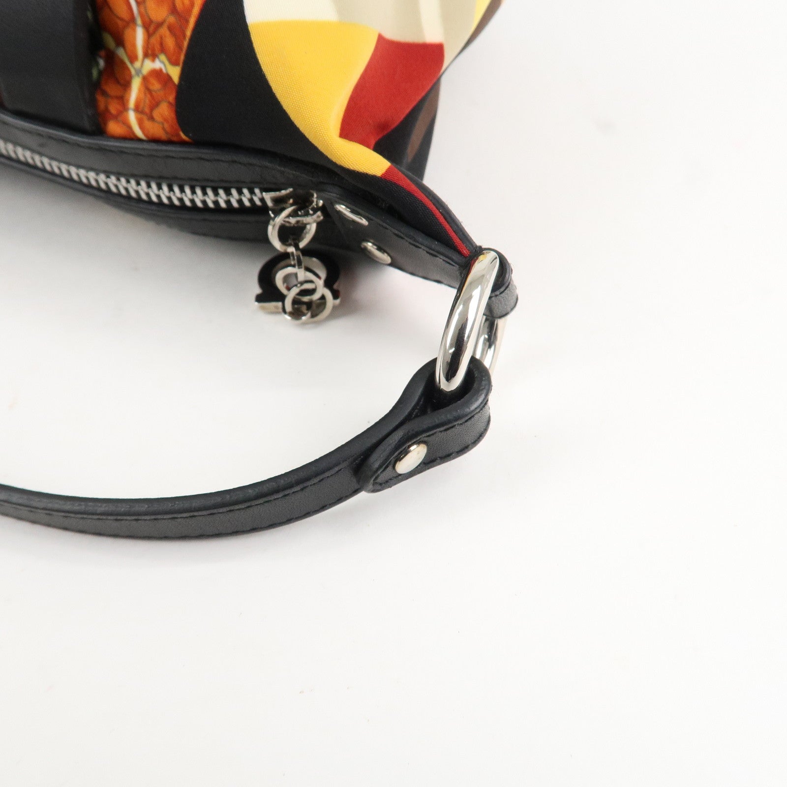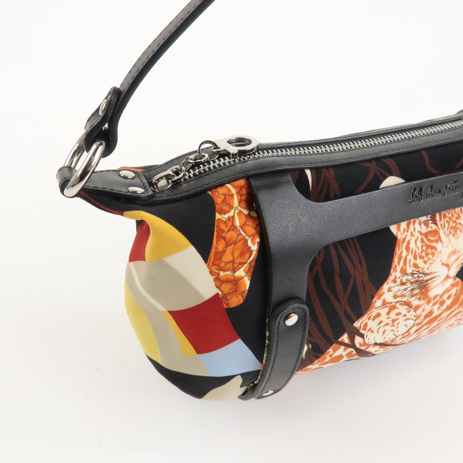 Ferragamo Nylon Leather Mini Hand Bag Pouch Multicolor Black Used