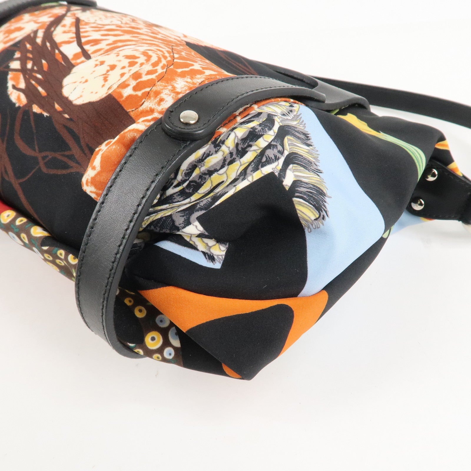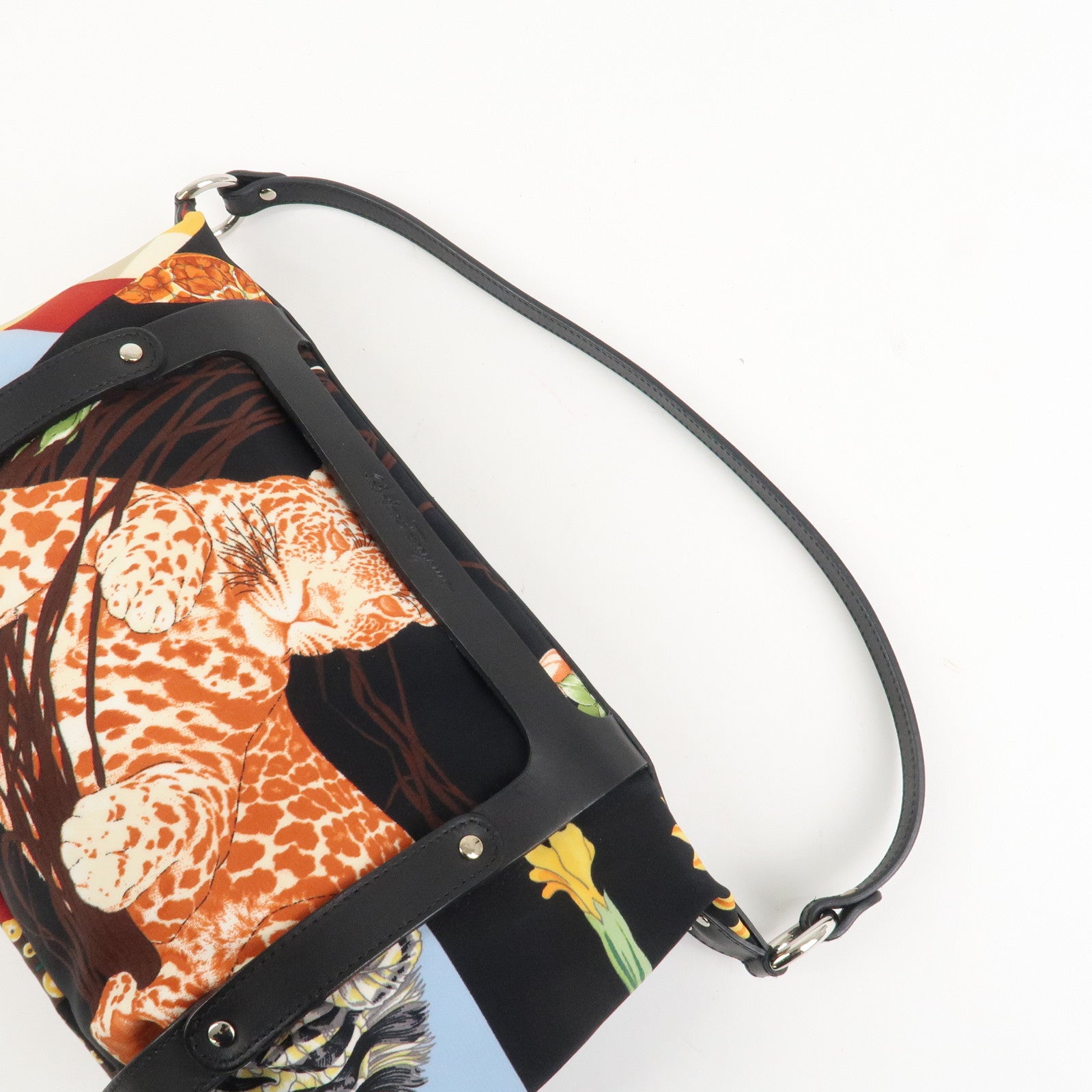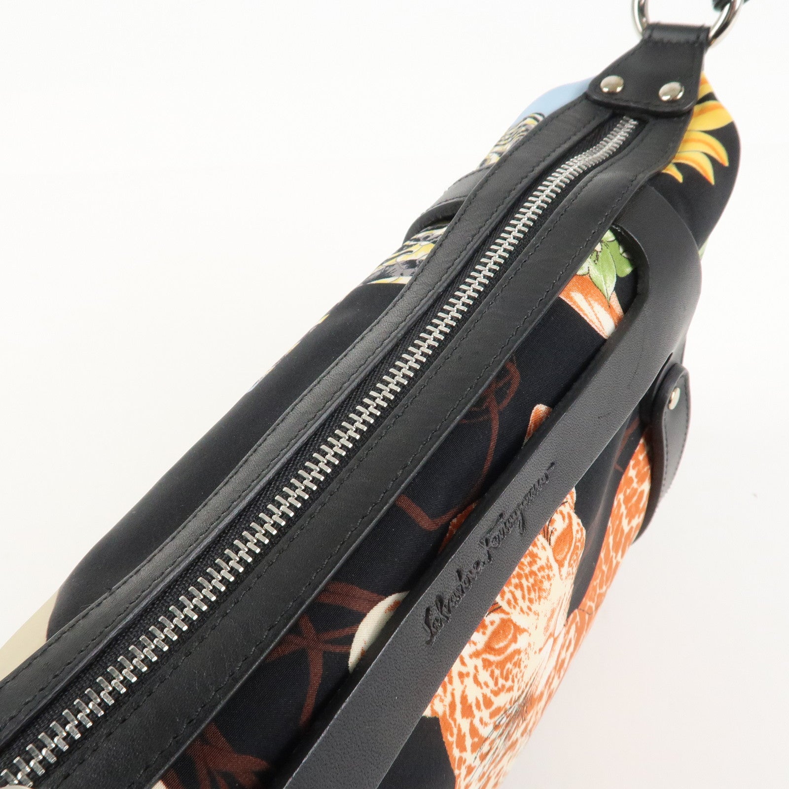 Ferragamo Nylon Leather Mini Hand Bag Pouch Multicolor Black Used