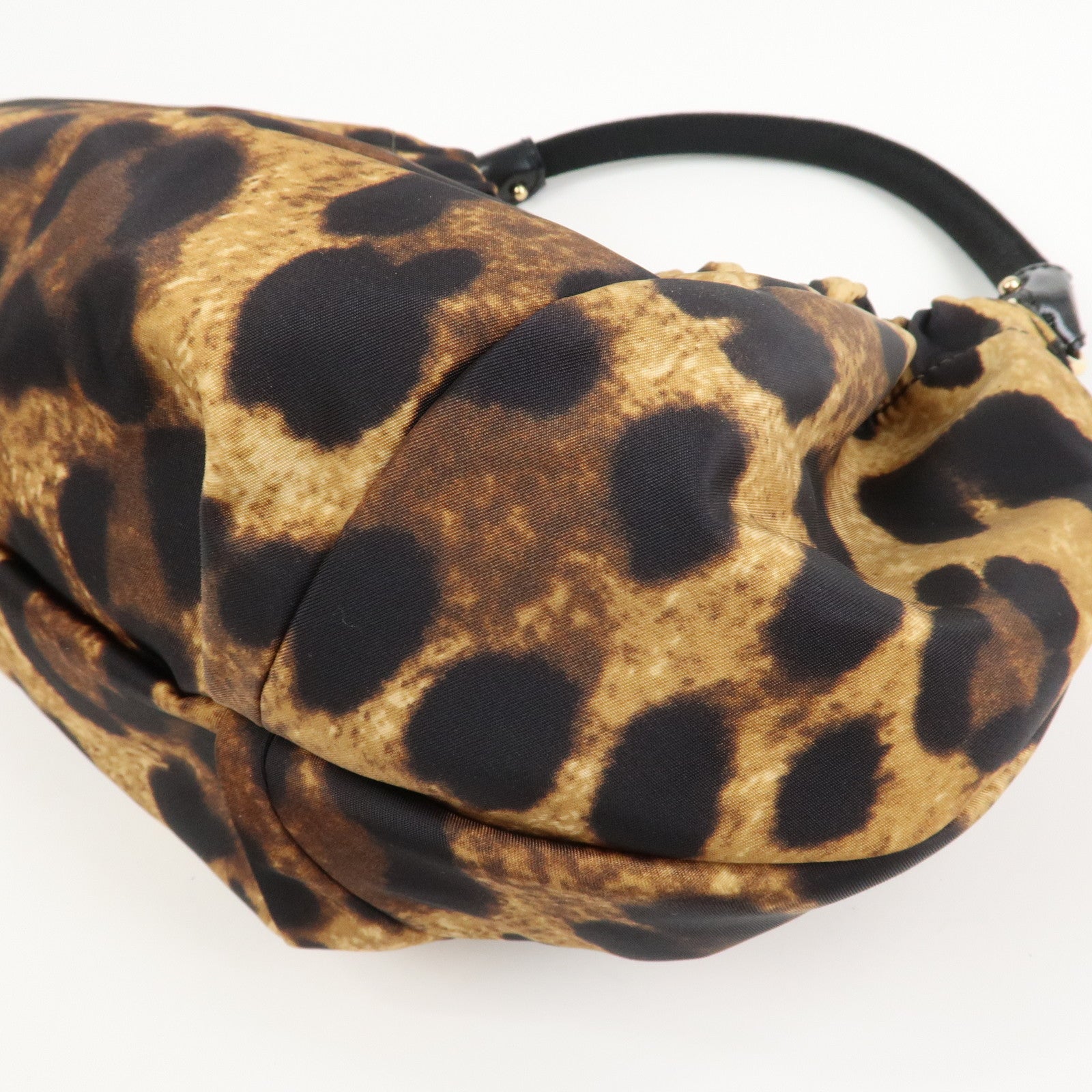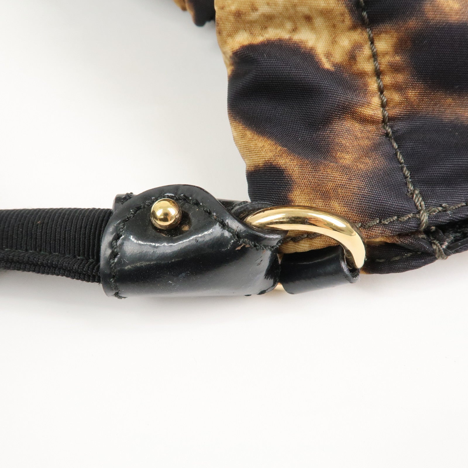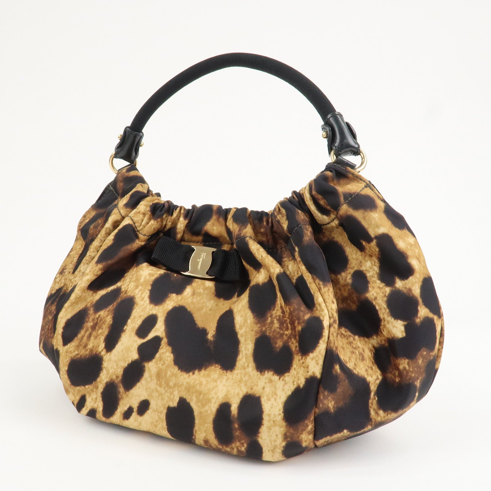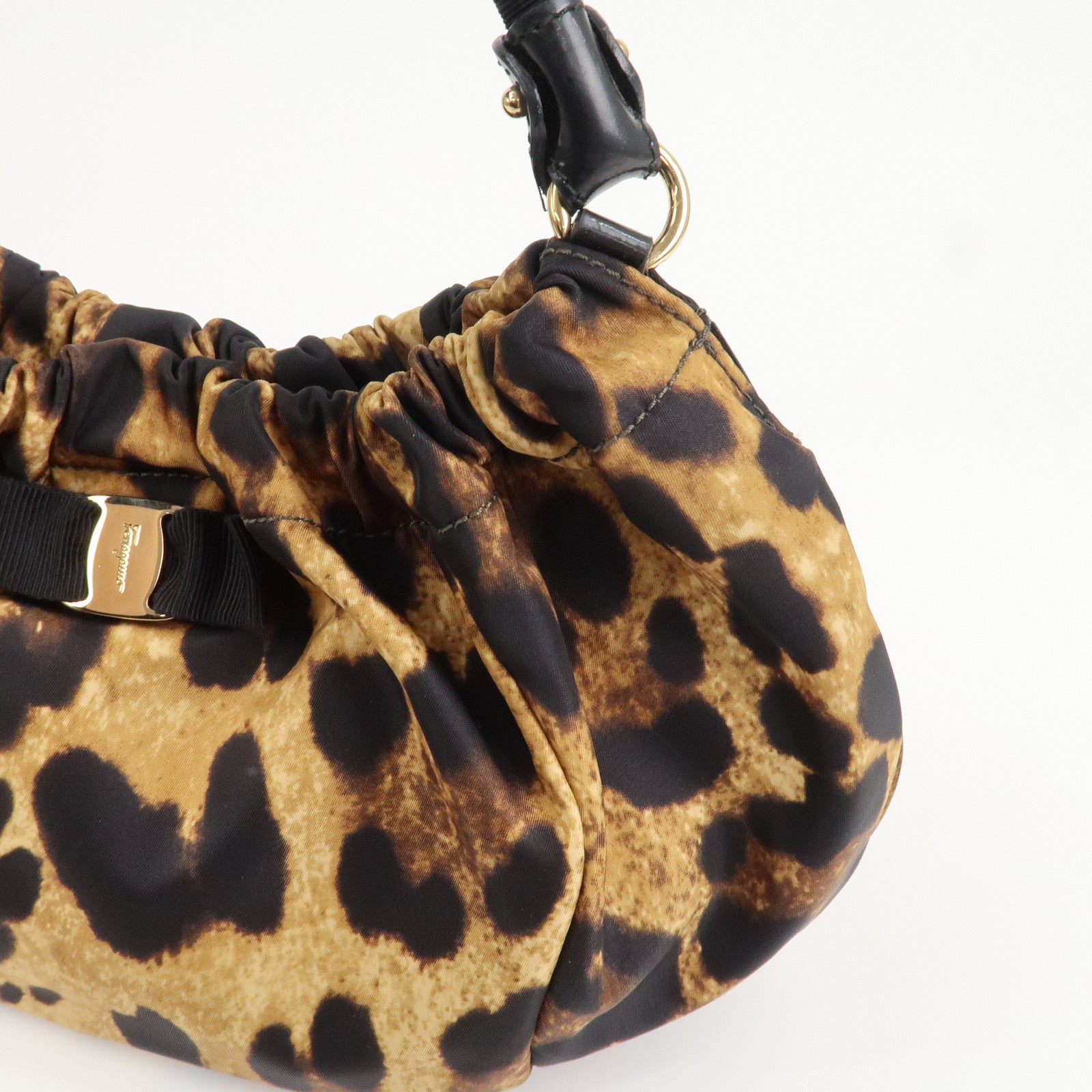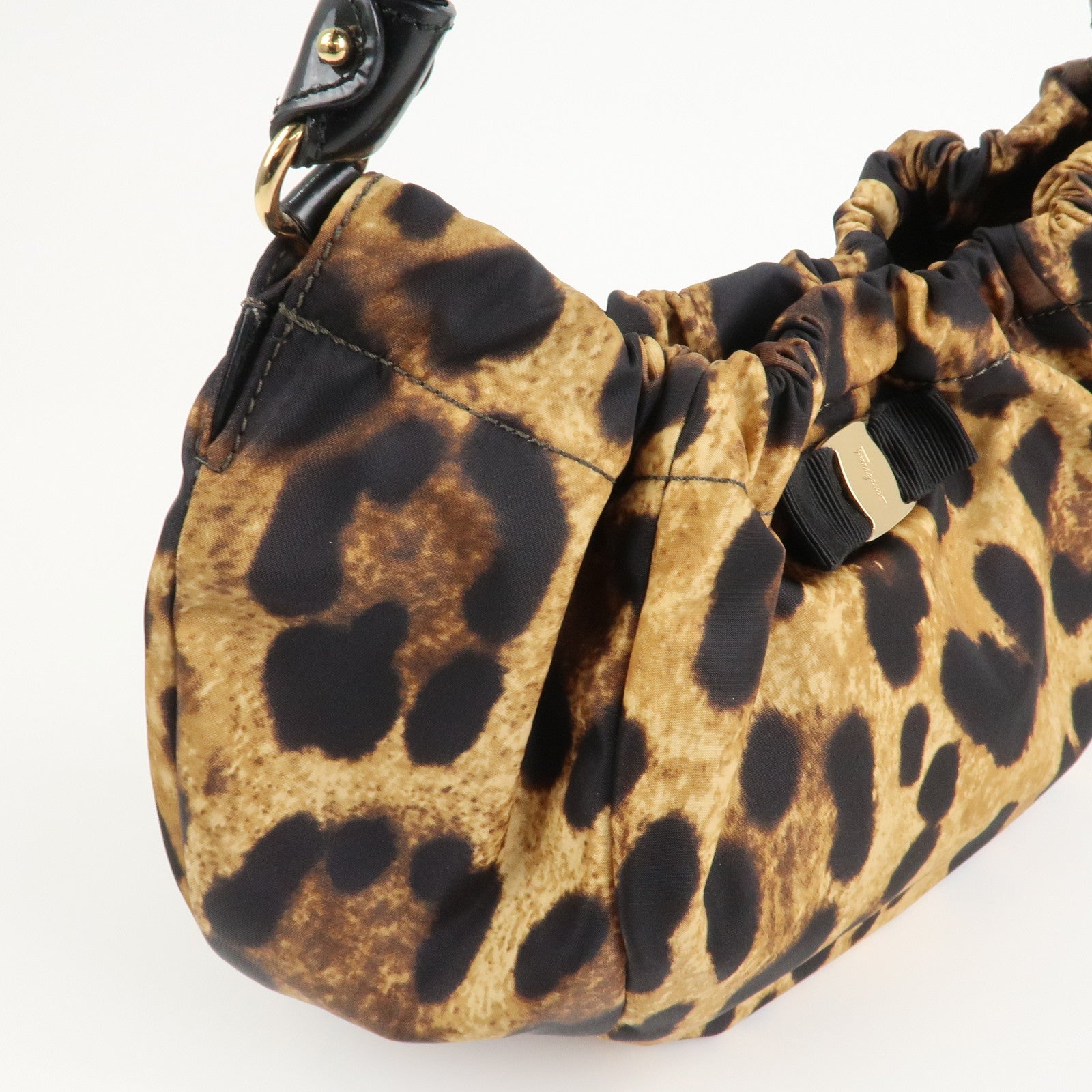 Ferragamo Vara Ribbon Nylon Patent Leather Shoulder Bag Leopard