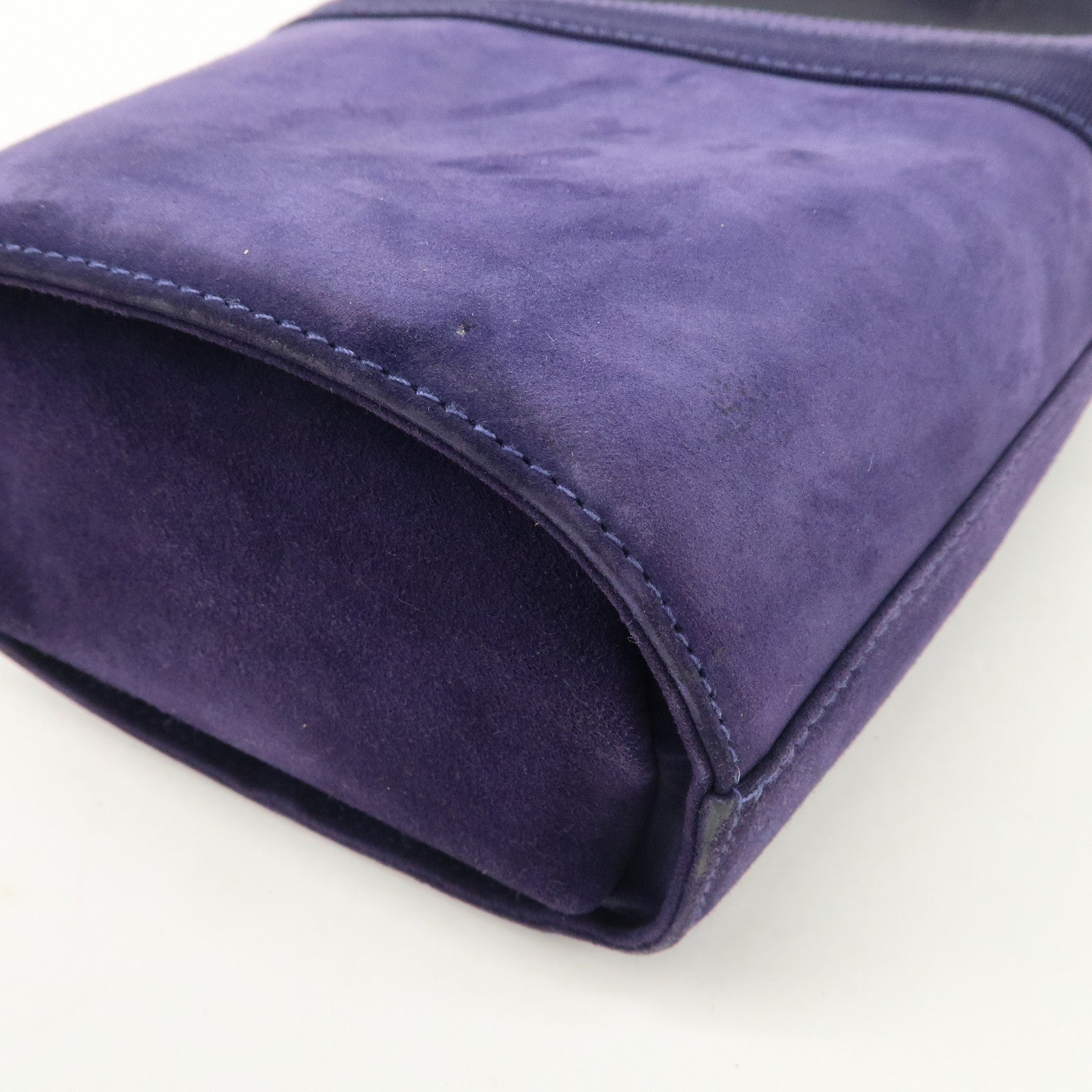 Ferragamo Vara Ribon Suede Hand Bag Purple Gold Hardware Used
