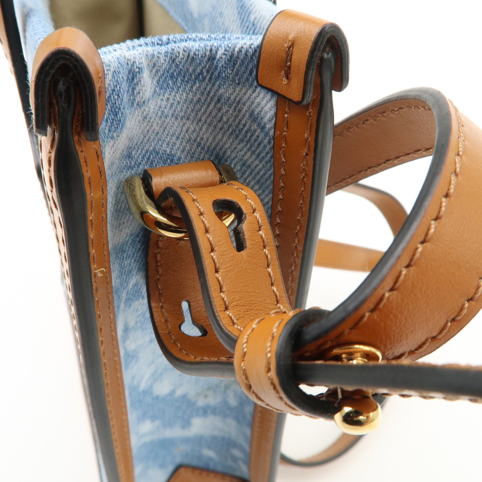 GIANNI VERSACE Leather Denim 2Way Hand Bag Shoulder Bag Blue Brown Used