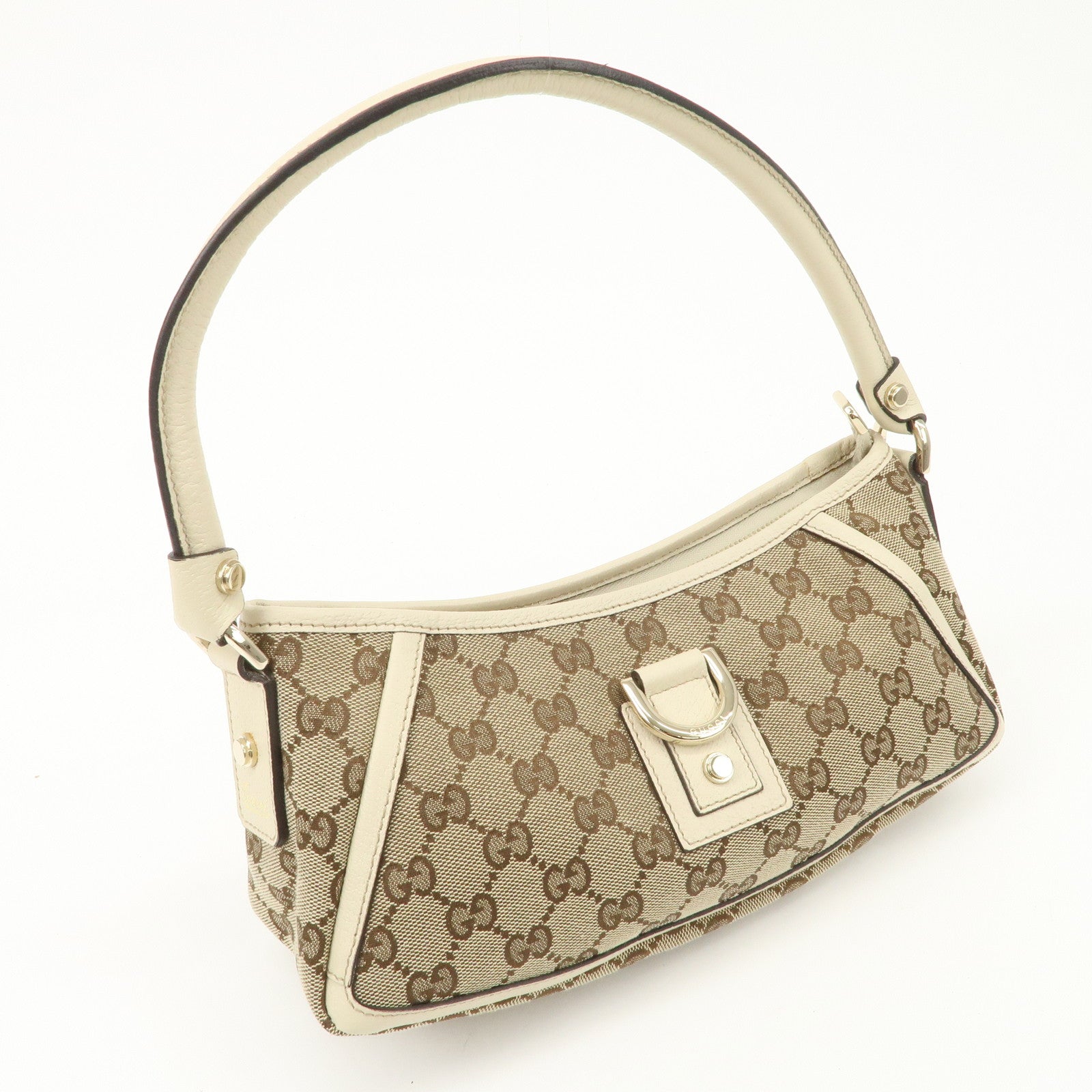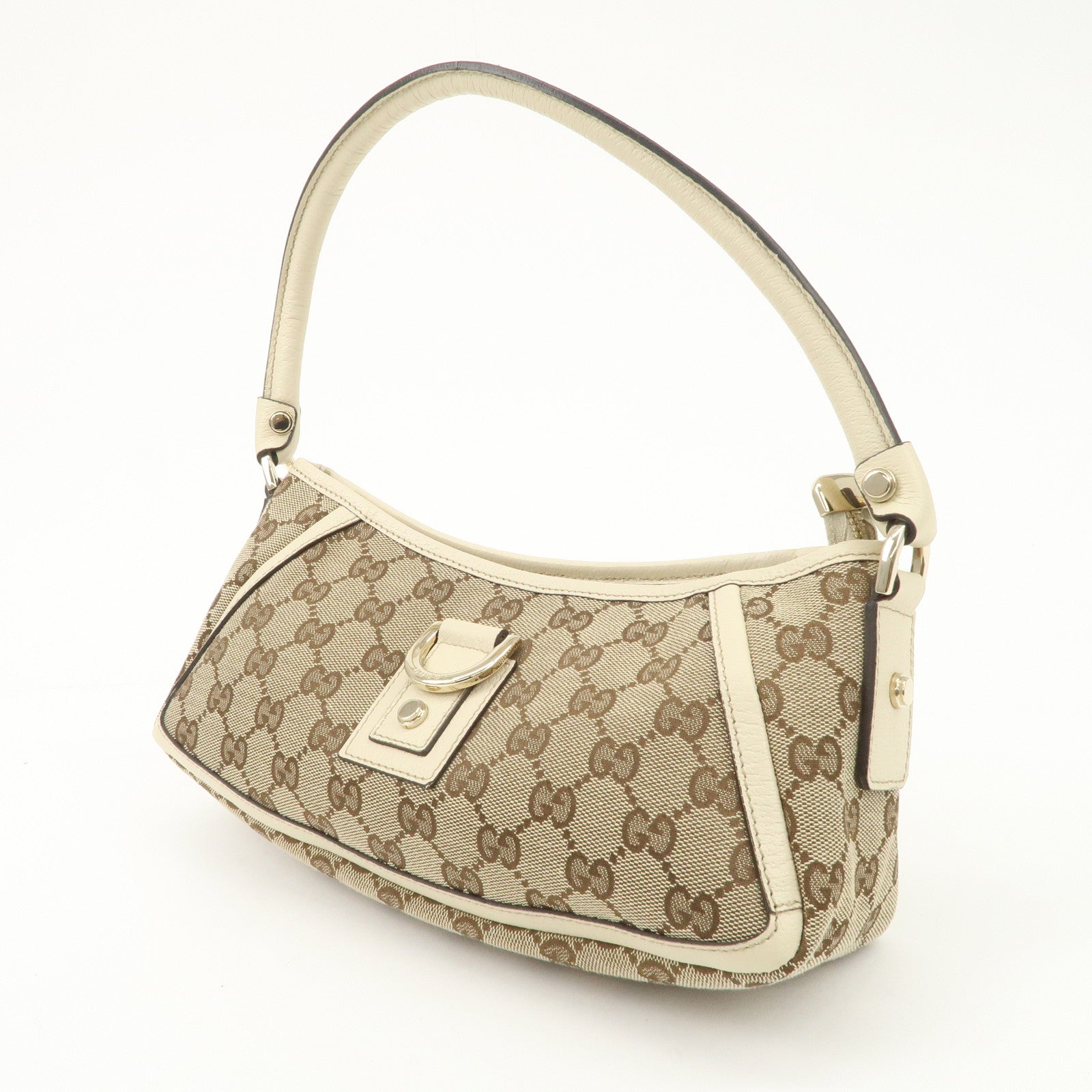GUCCI Abbey GG Canvas Leather Shoulder Bag Beige Ivory Gold HDW 130939 Used