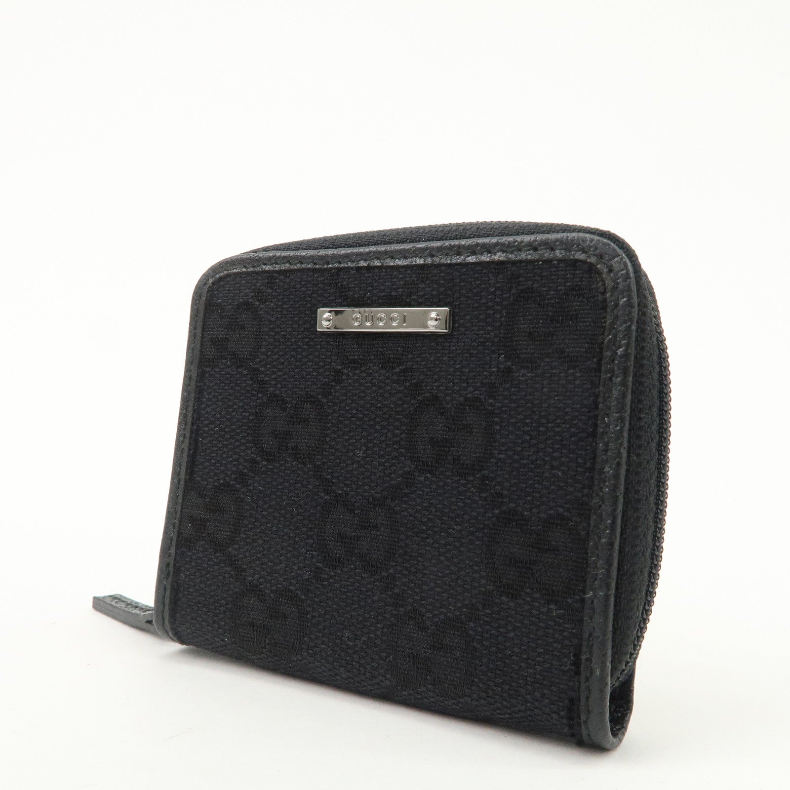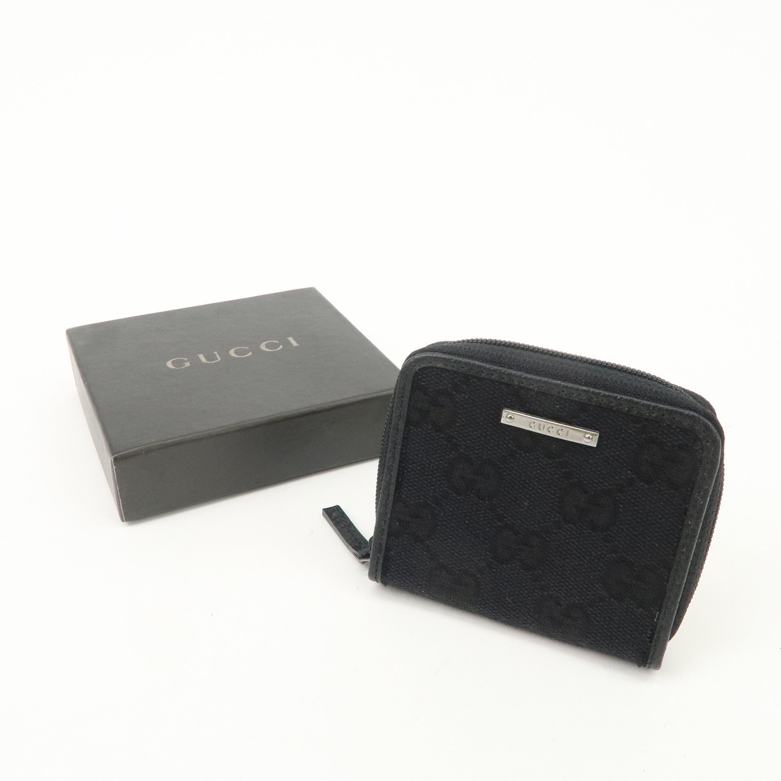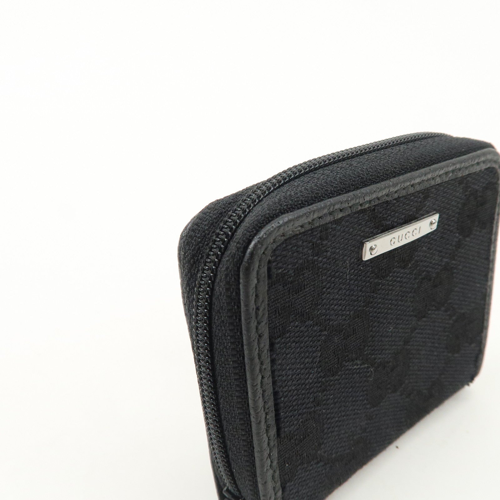 GUCCI GG Canvas Leather Coin Case Coin Purse Black 115255 Used
