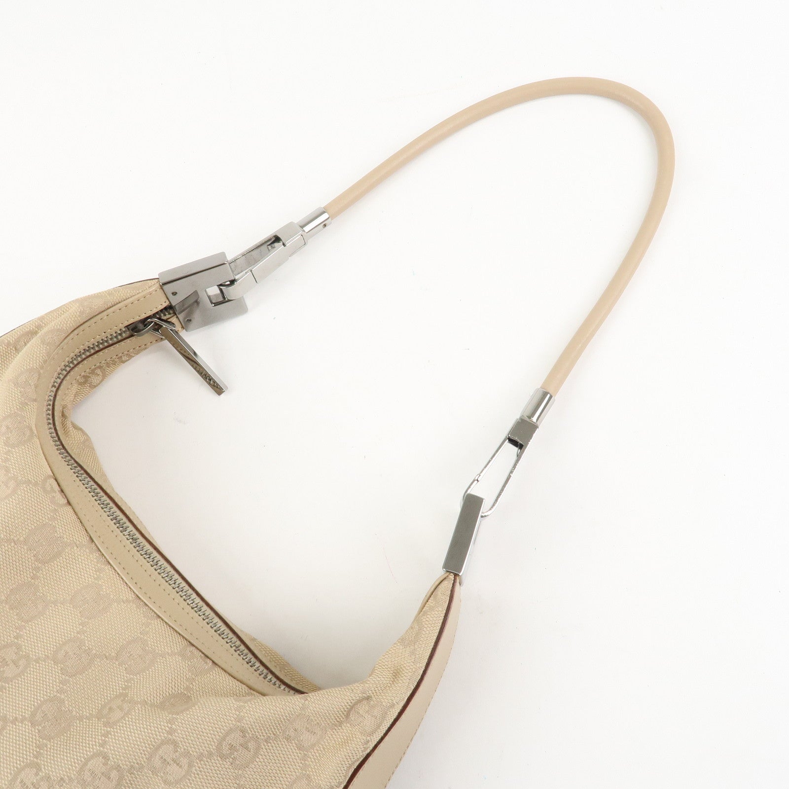 GUCCI GG Canvas Leather Shoulder Bag Beige Silver HDW 01233 Used