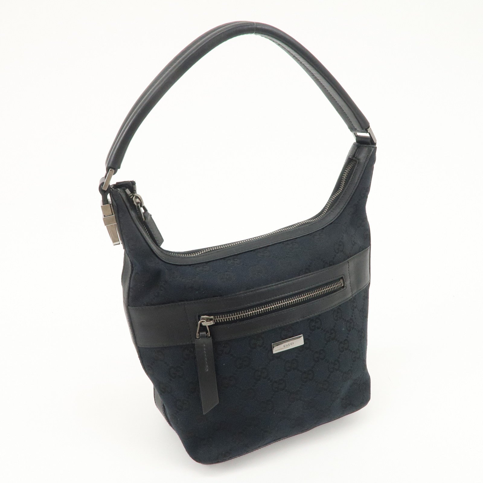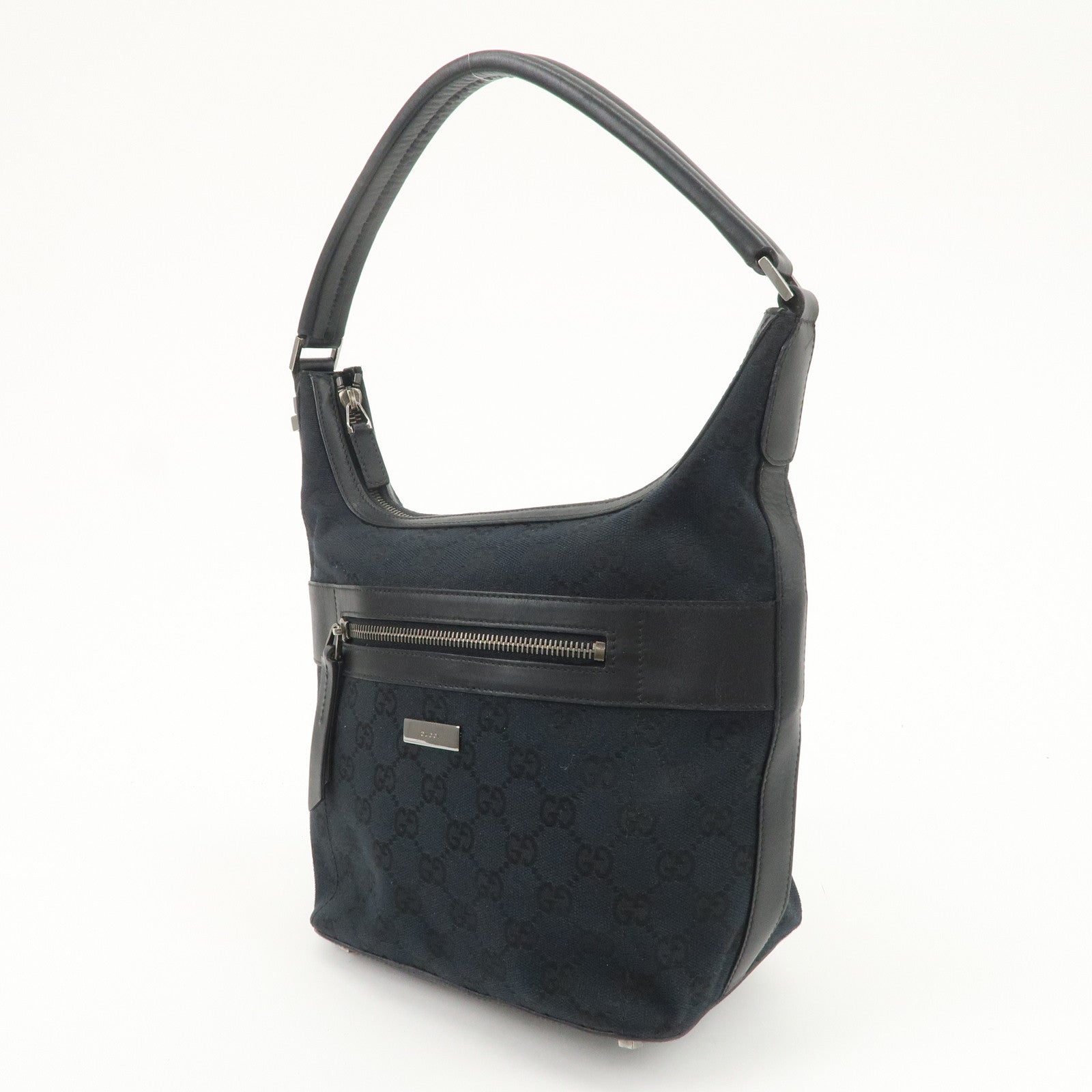 GUCCI GG Canvas Leather Shoulder Bag Hand Bag Black 001.4299 Used