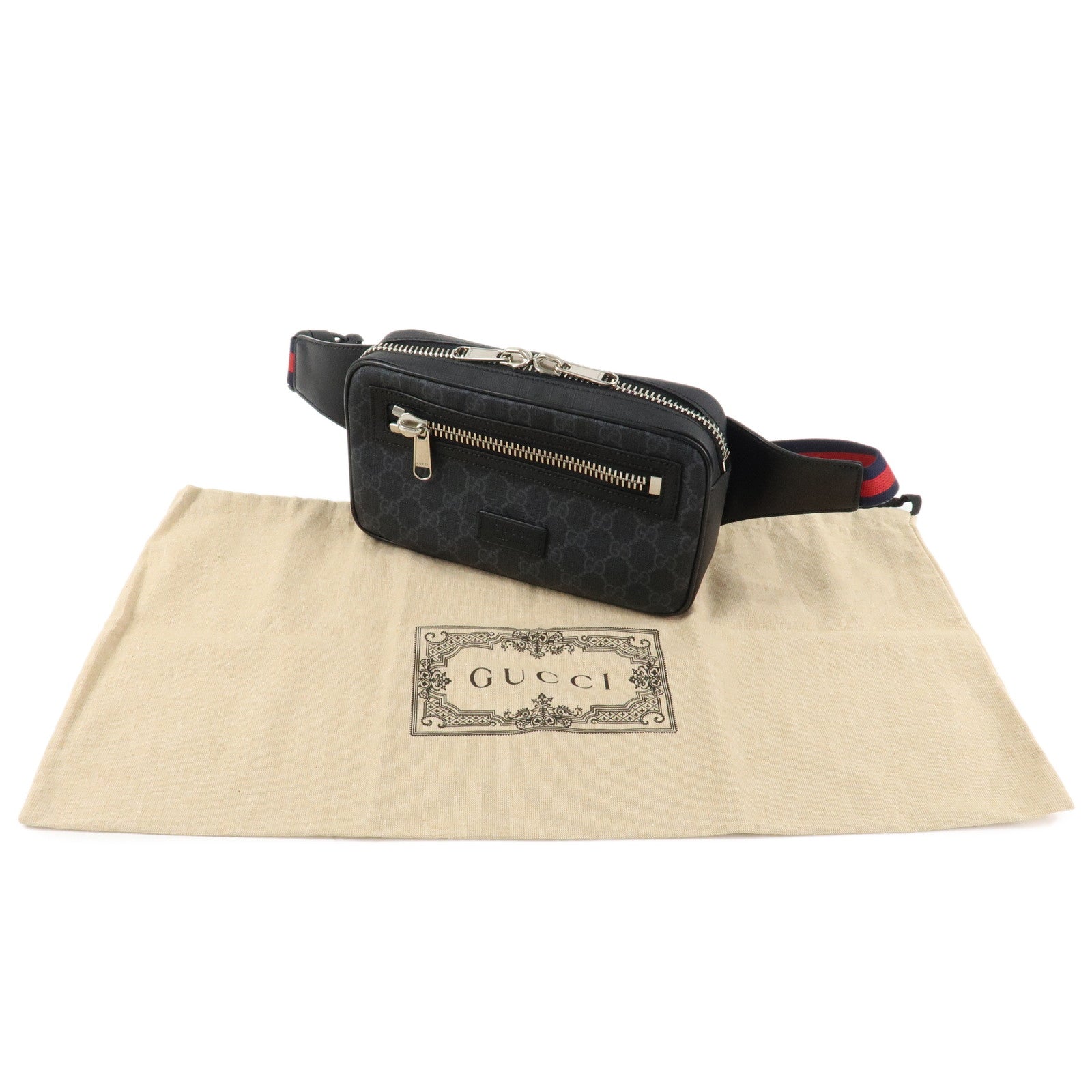 GUCCI GG Supreme Leather Waist Bag Crossbody Bag Black 474293 Used
