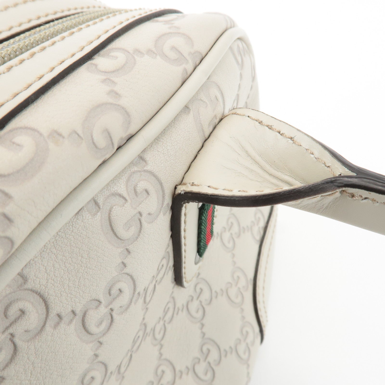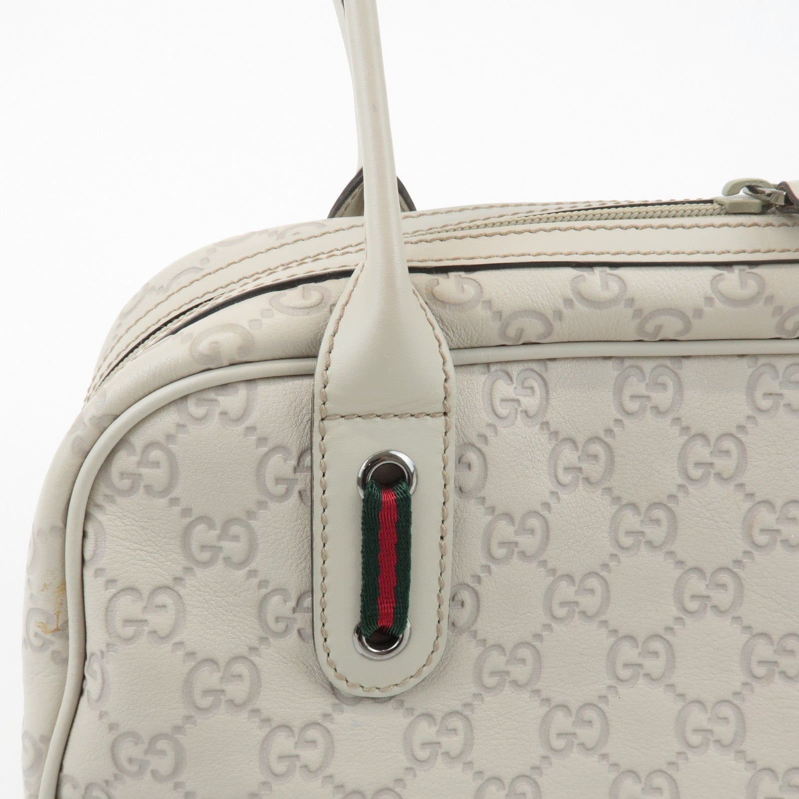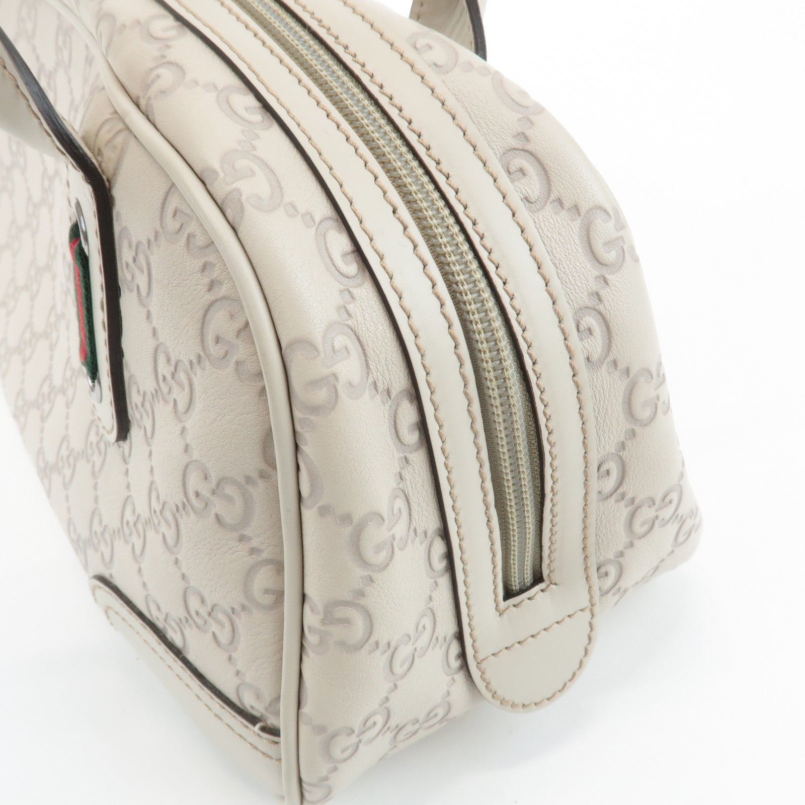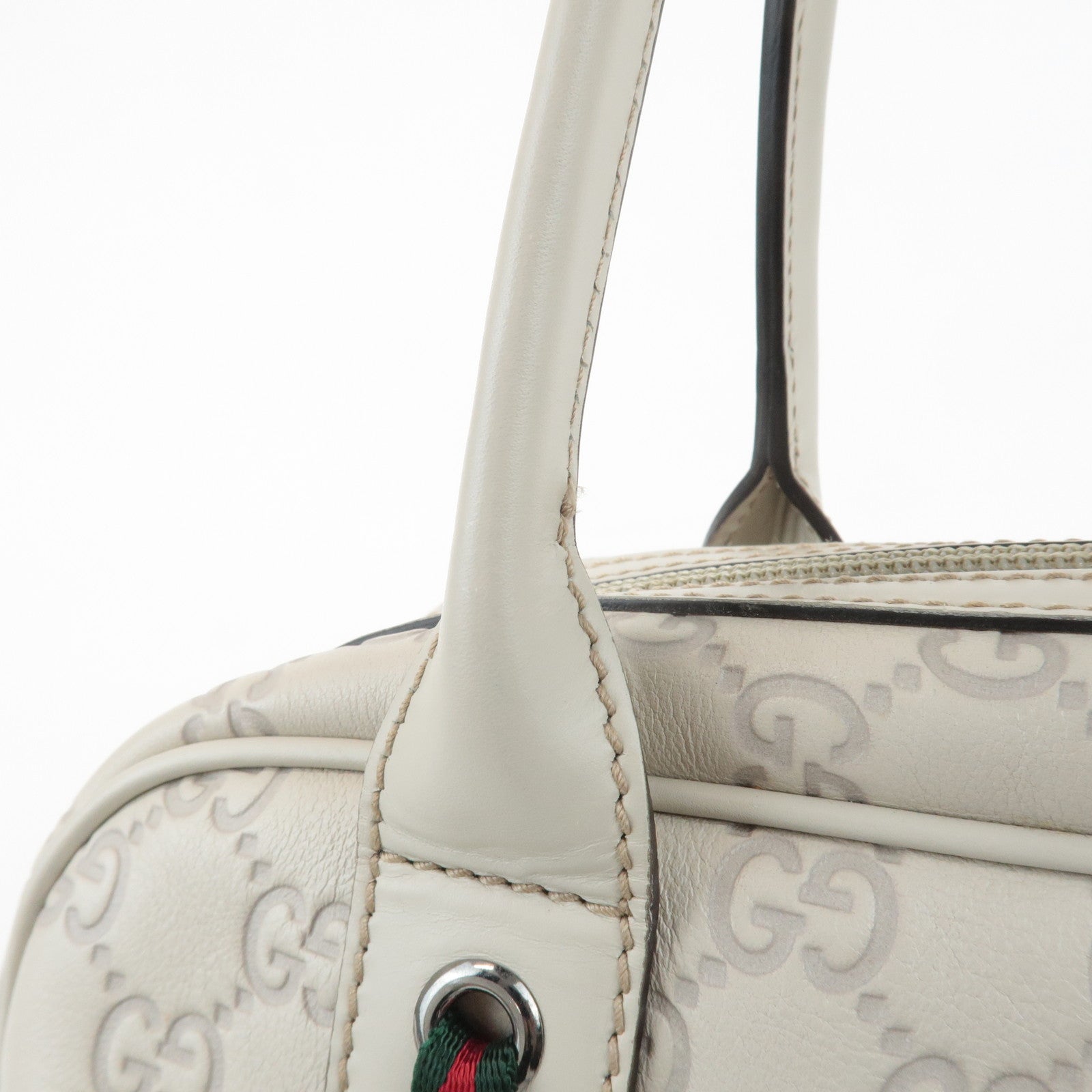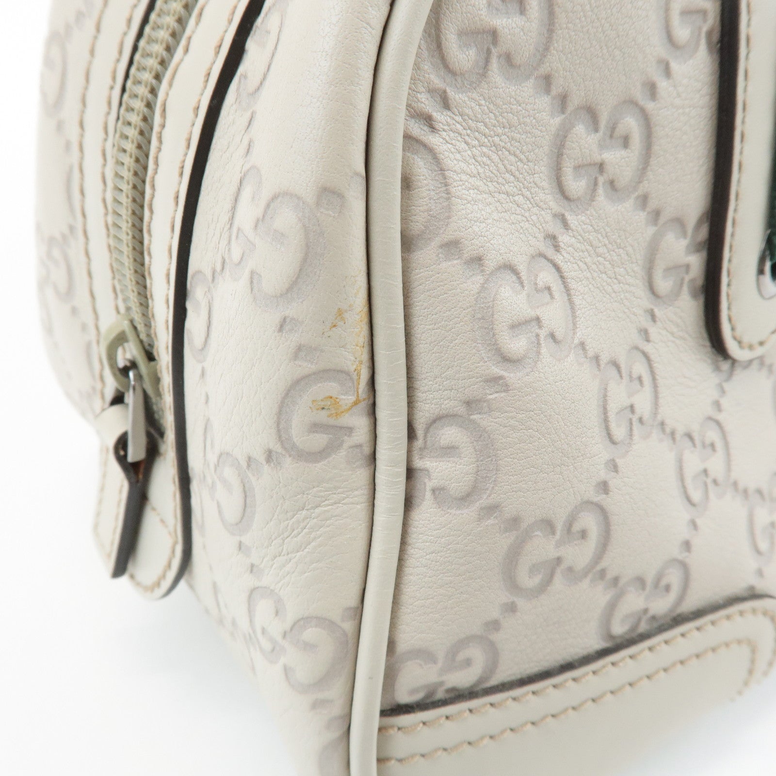 GUCCI Sherry Guccissima Leather Boston Bag Hand Bag Ivory 293594 Used