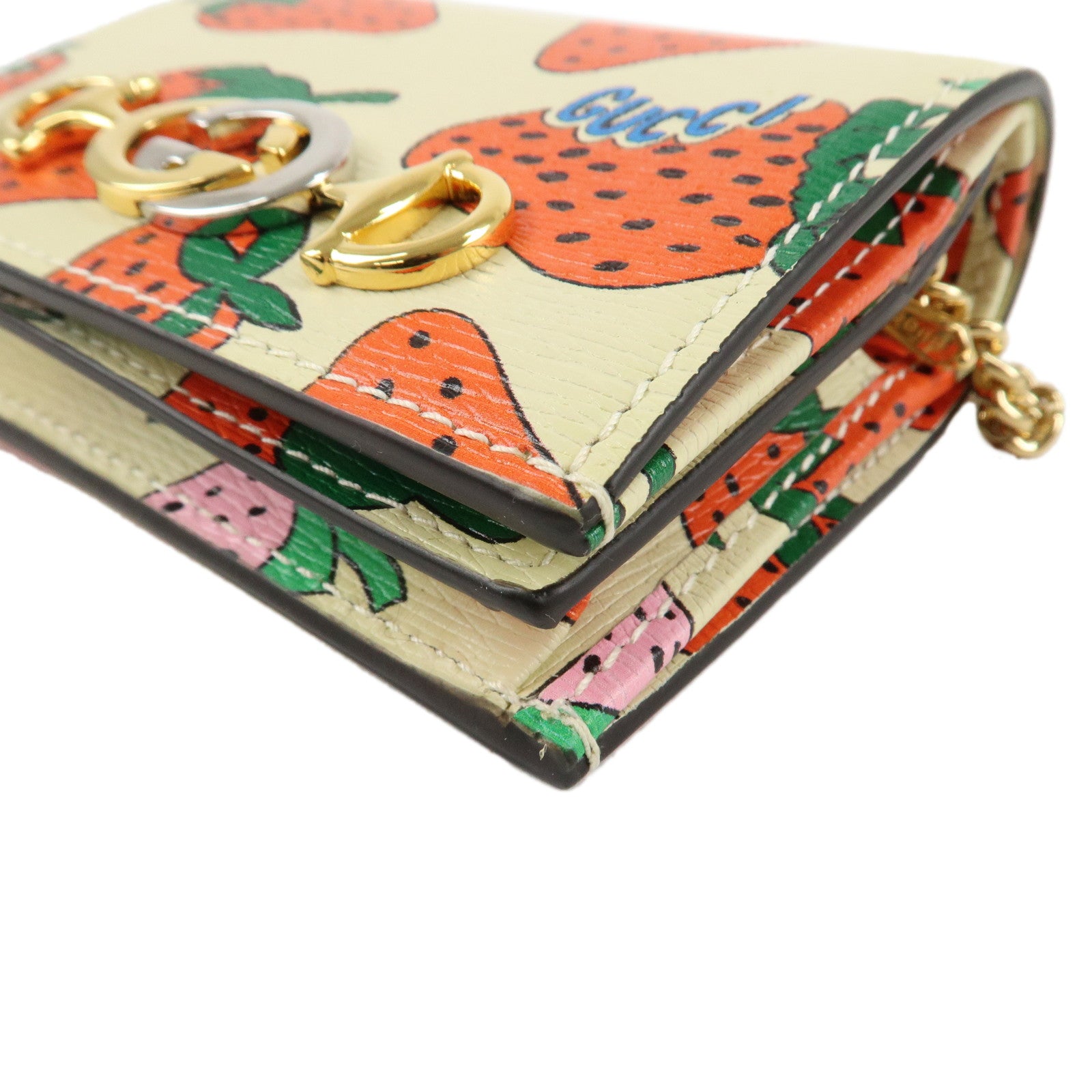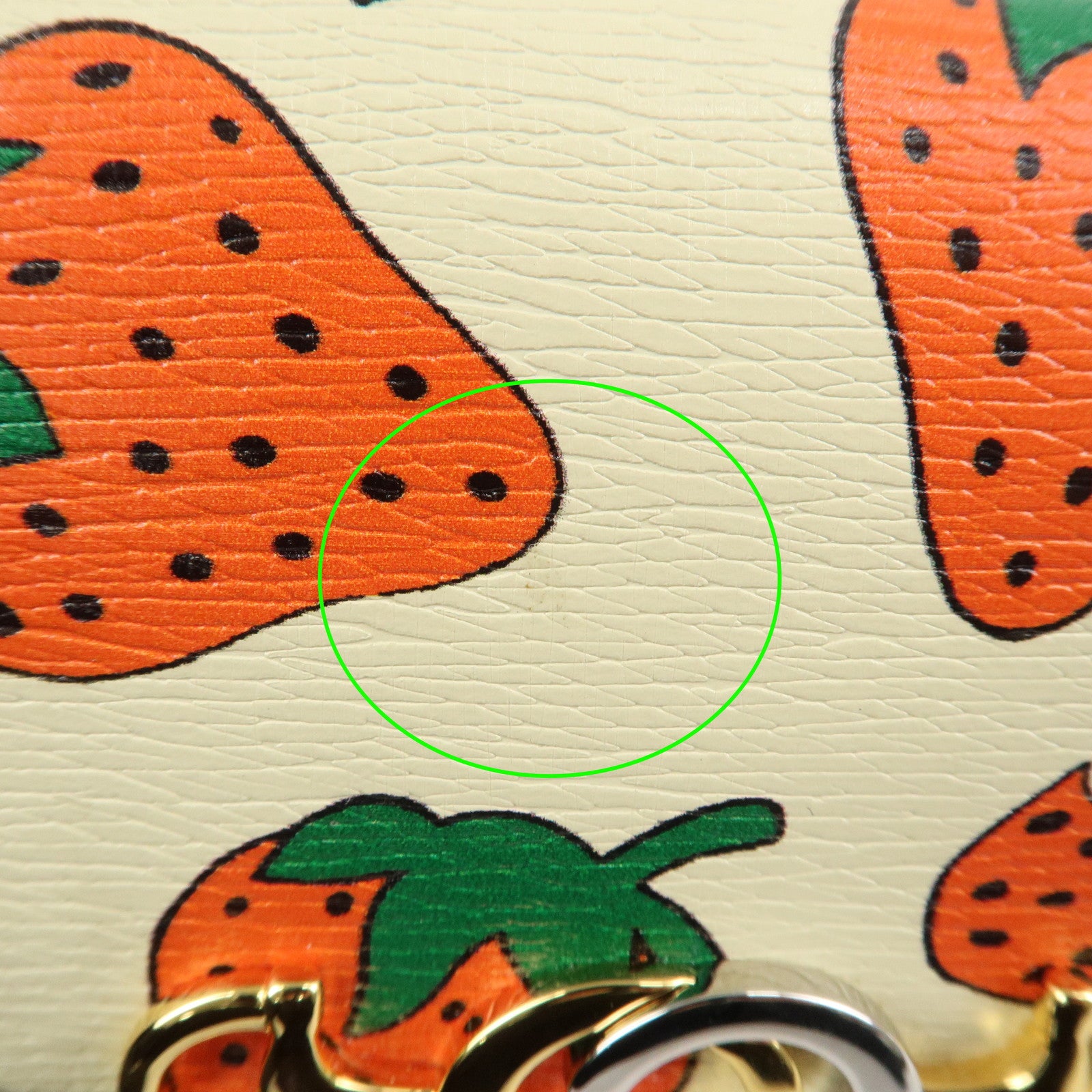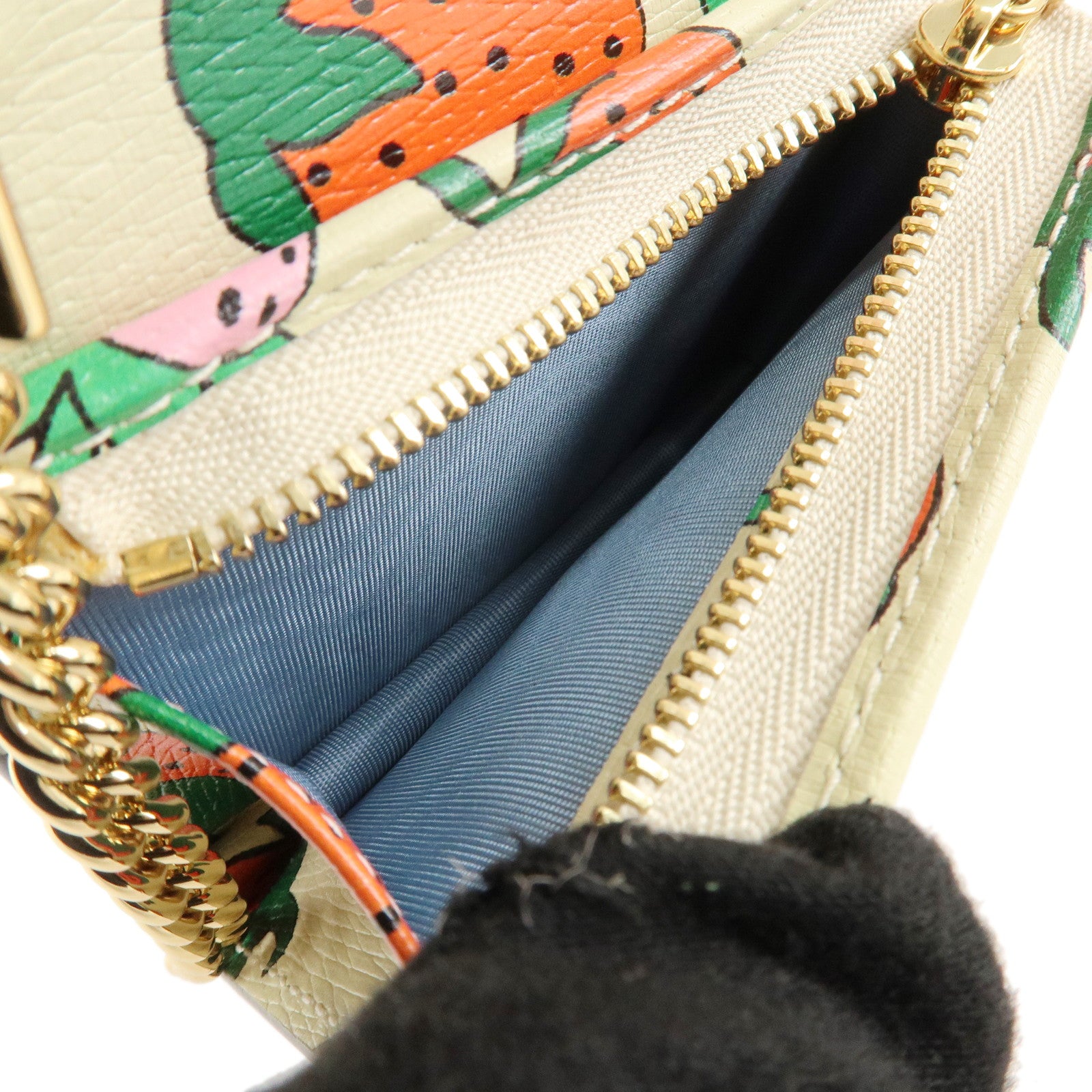 GUCCI Zumi Leather Strawberry Mini Chain Wallet Creme Green Red 570669 Used