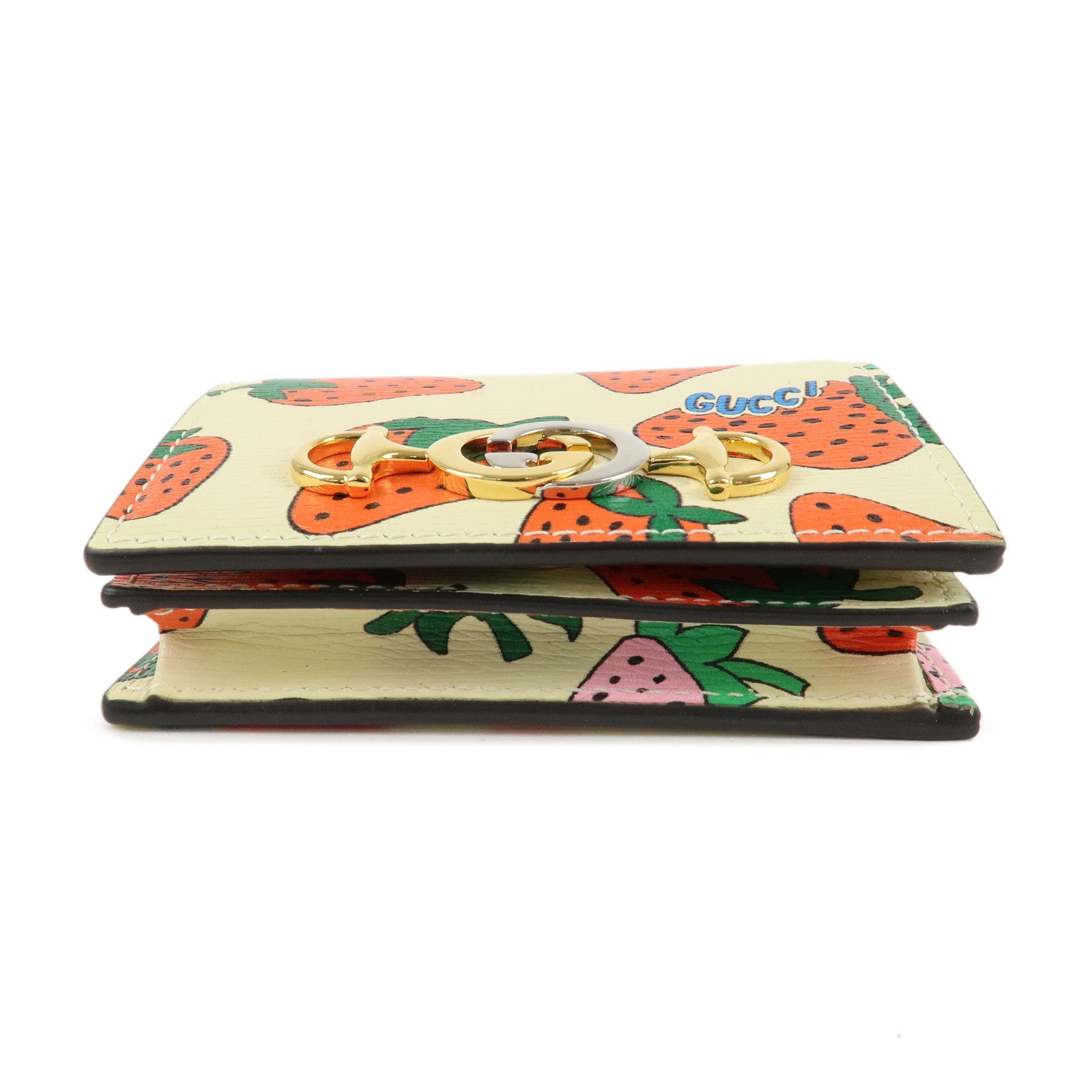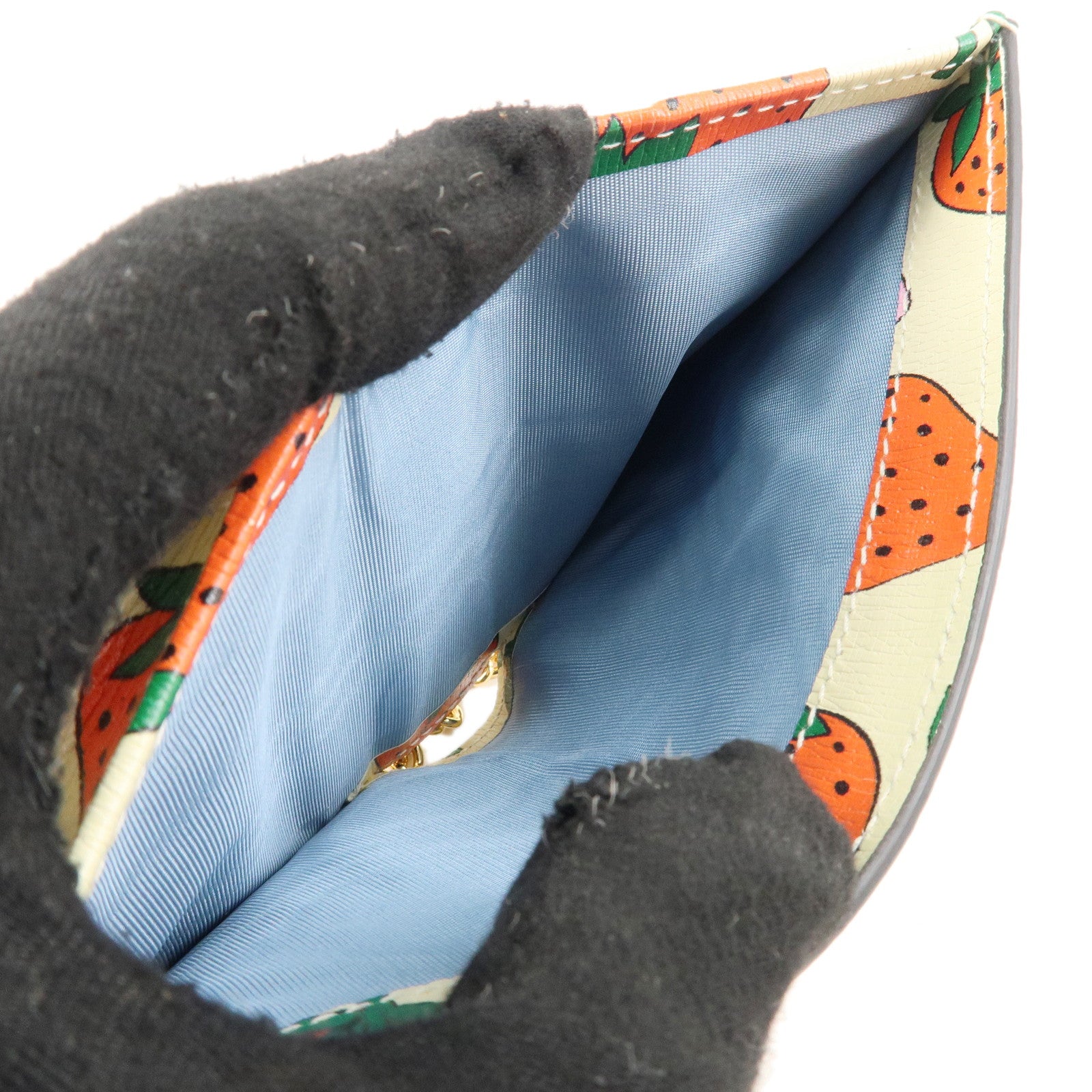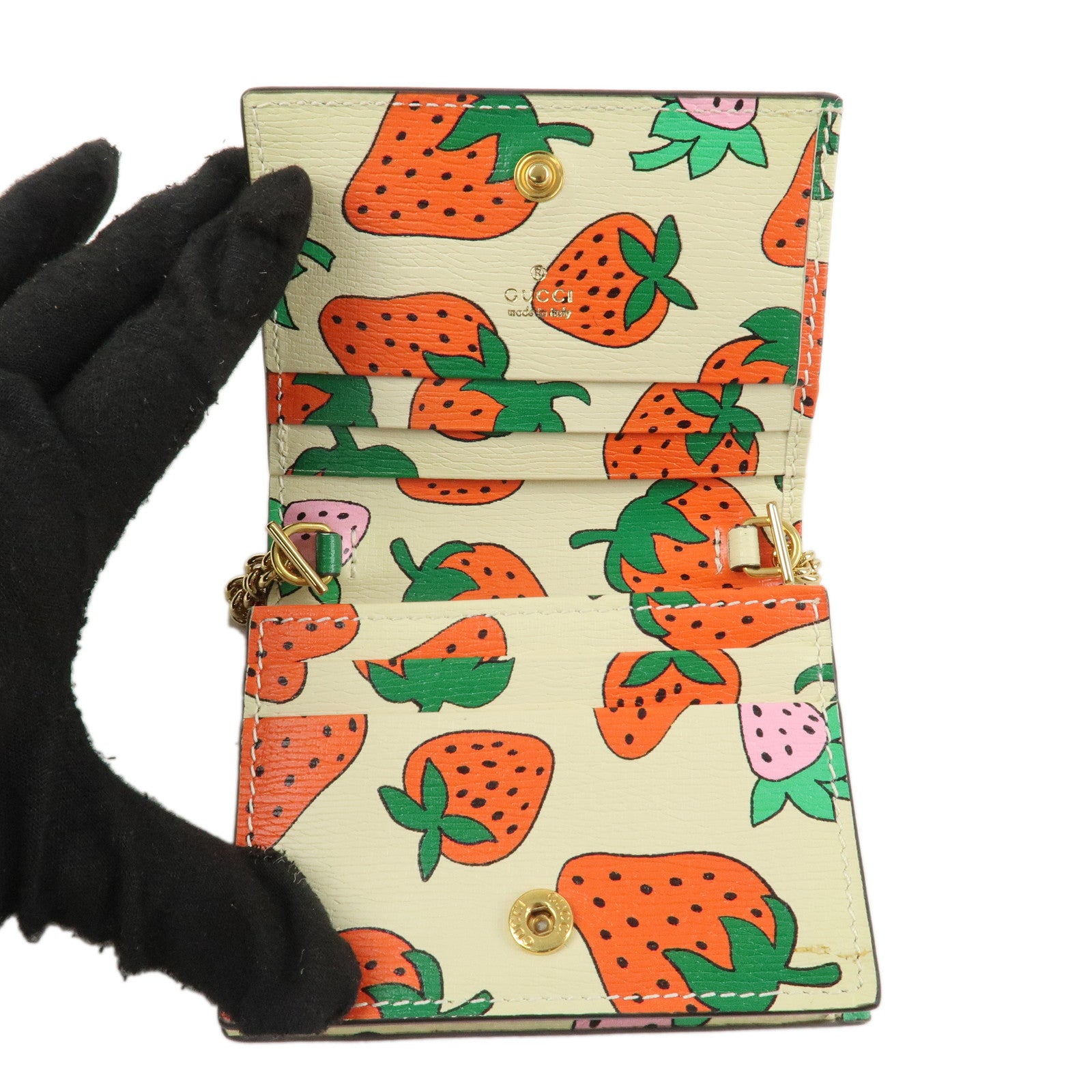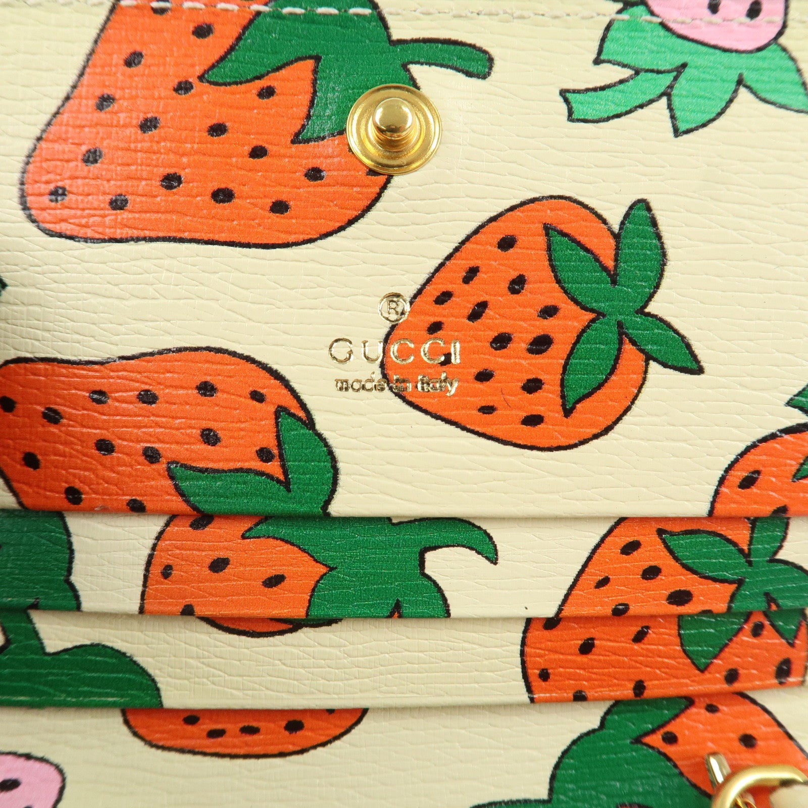 GUCCI Zumi Leather Strawberry Mini Chain Wallet Creme Green Red 570669 Used