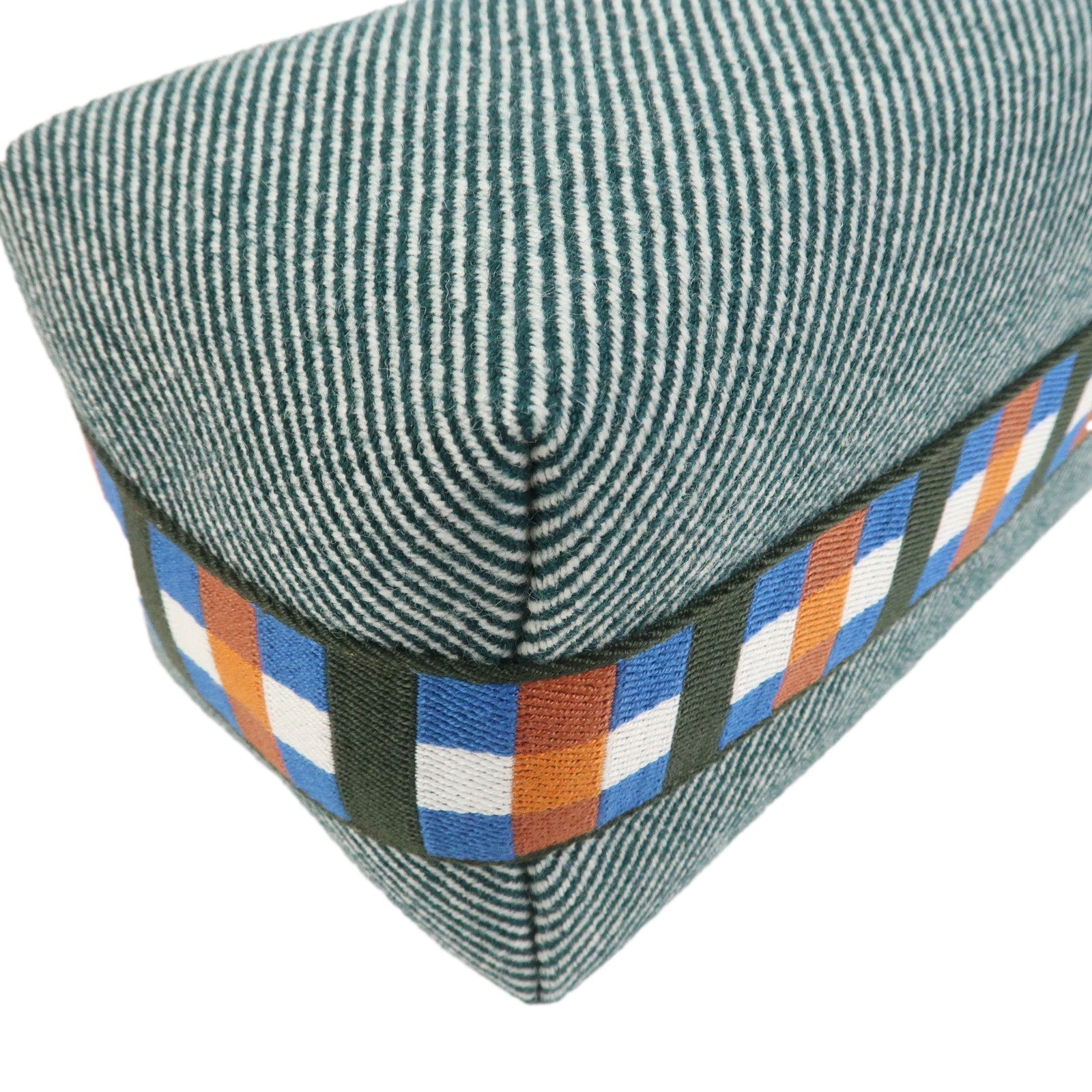 HERMES Bride A Brac PM Canvas Leather Plaid Hand Bag Pouch Green