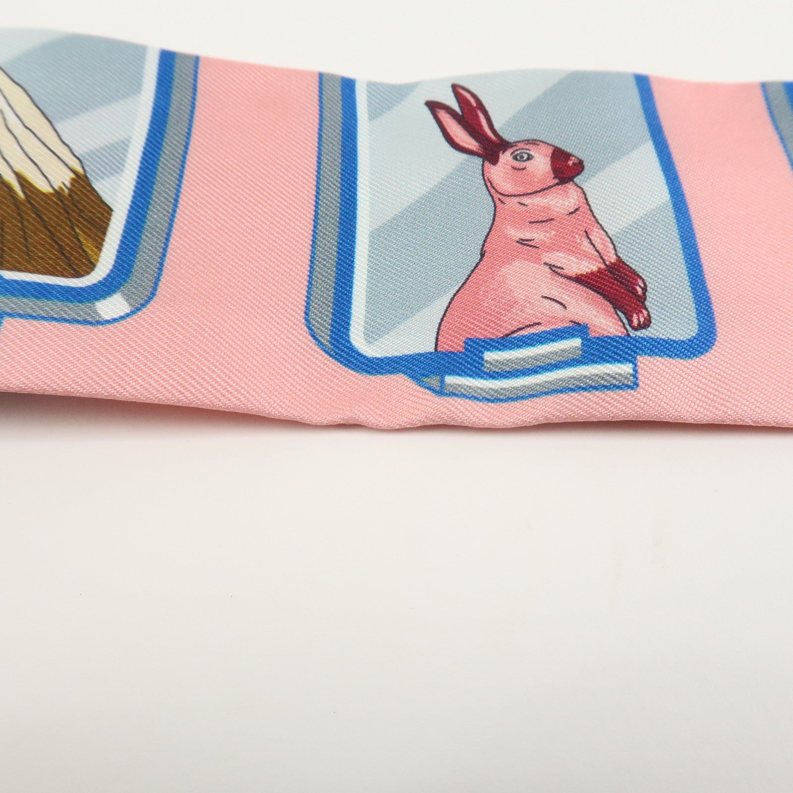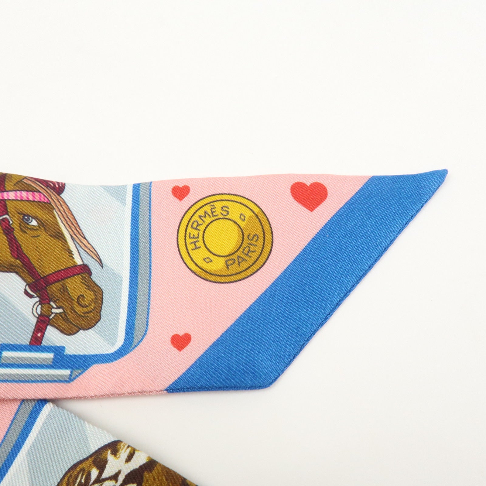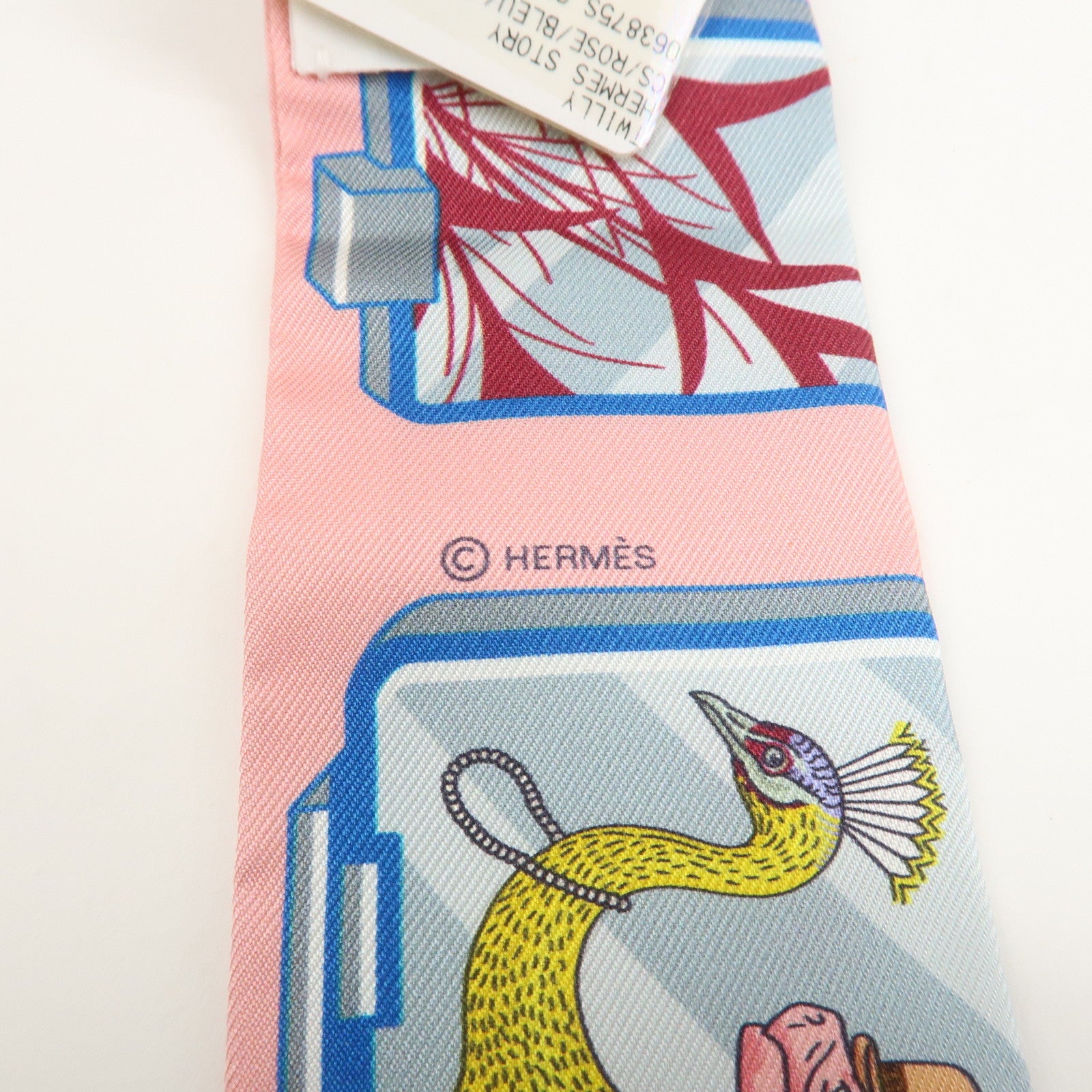 HERMES Twilly Silk 100% HERMES STORY Scarf Pink Blue