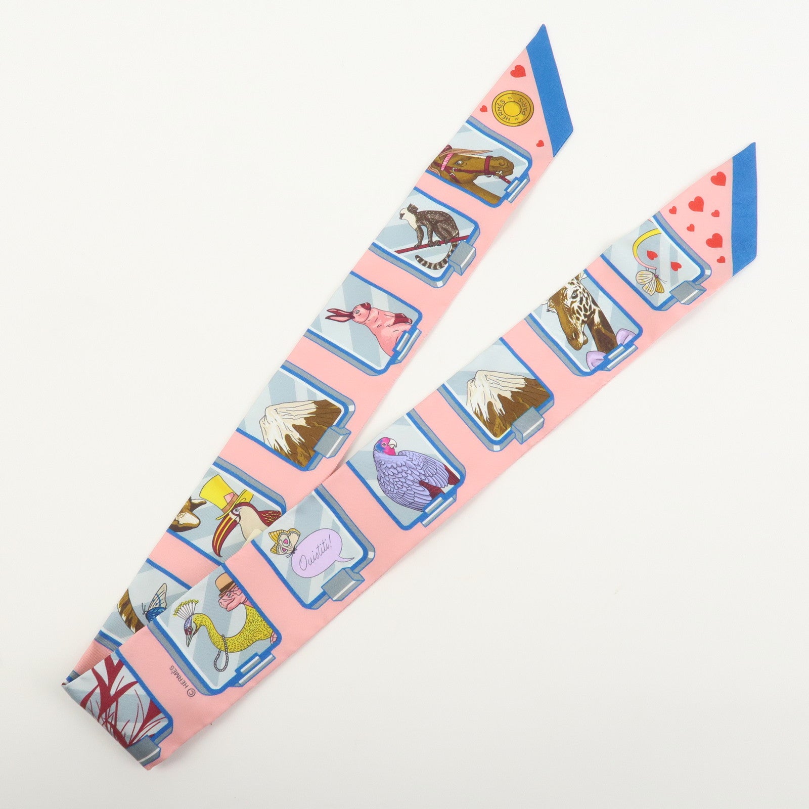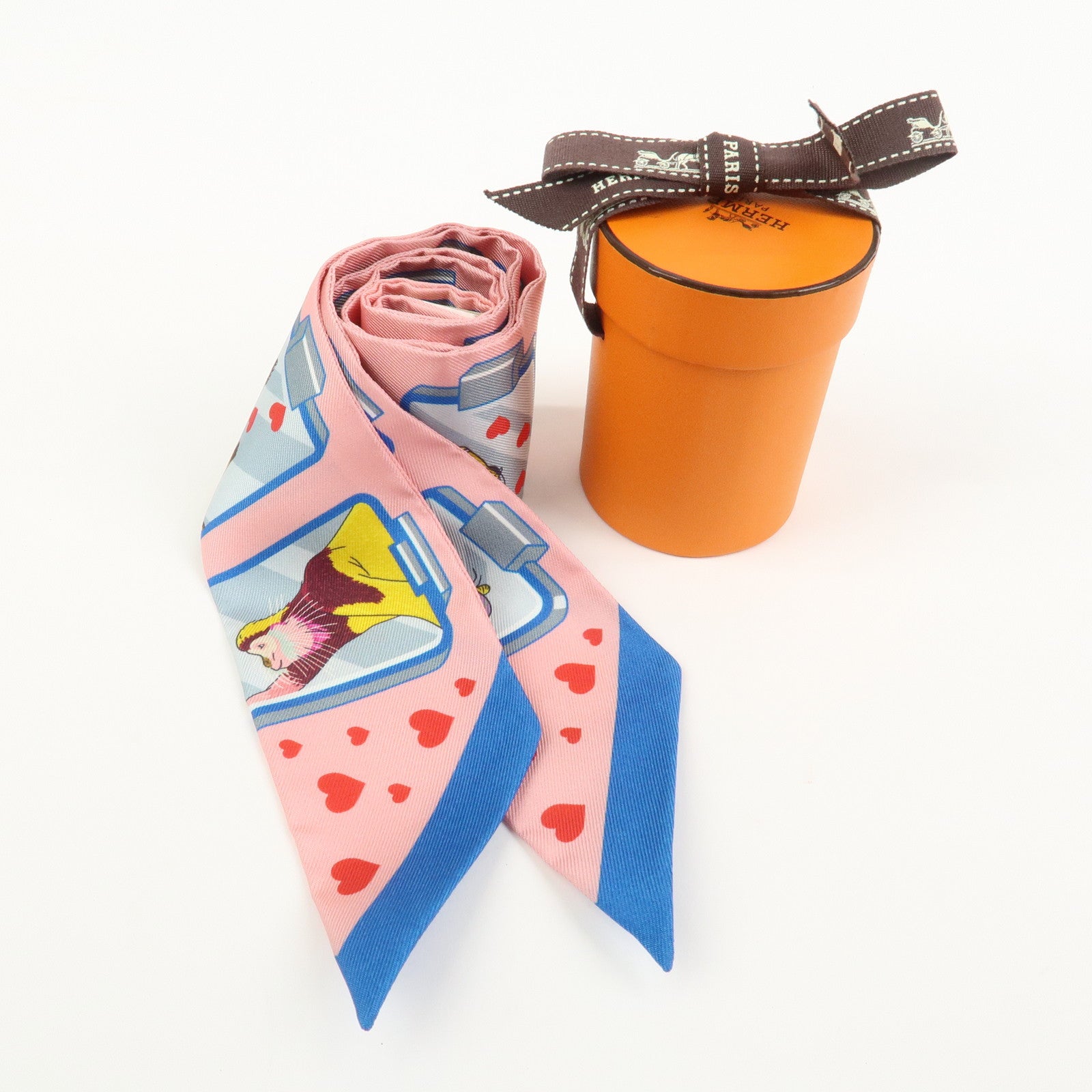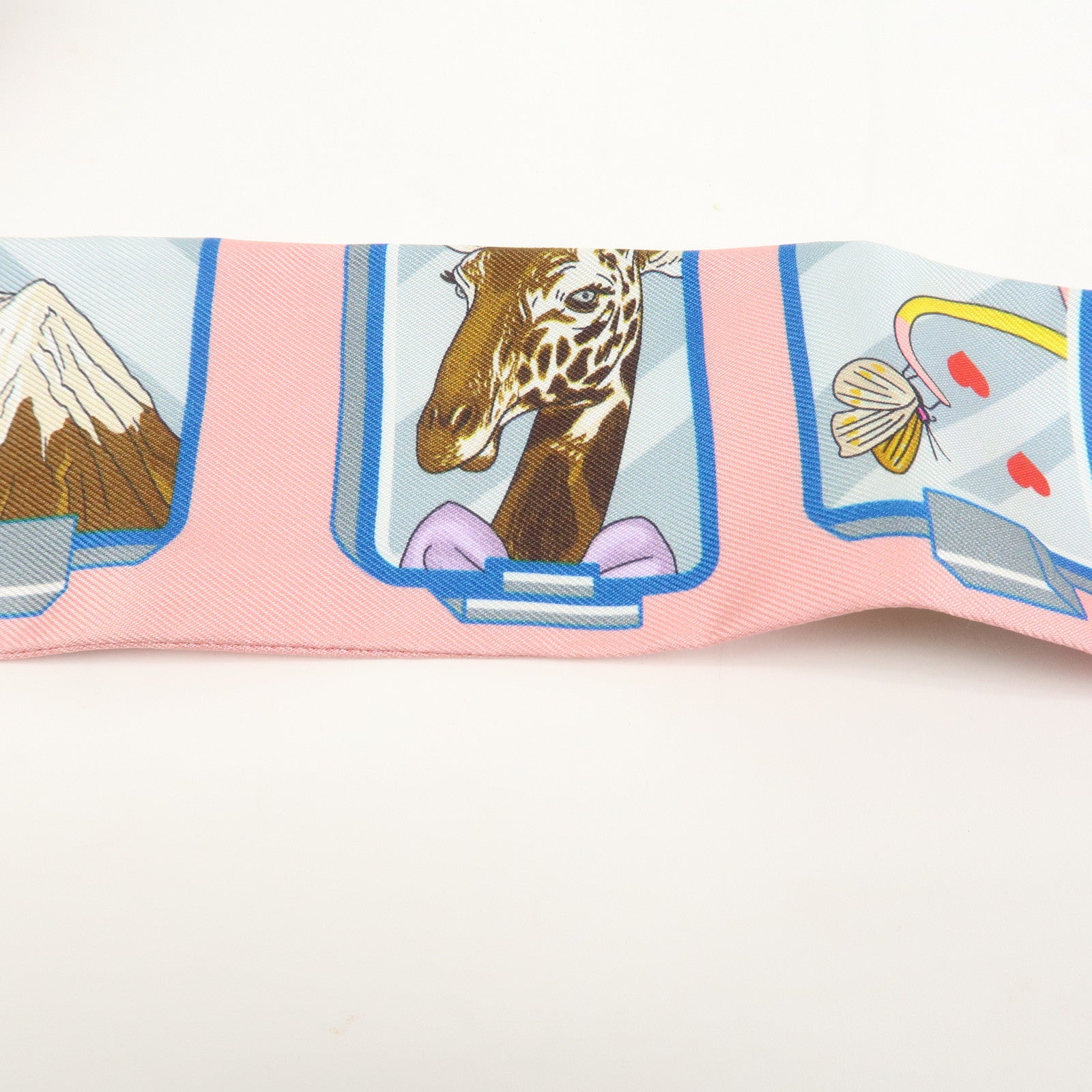 HERMES Twilly Silk 100% HERMES STORY Scarf Pink Blue