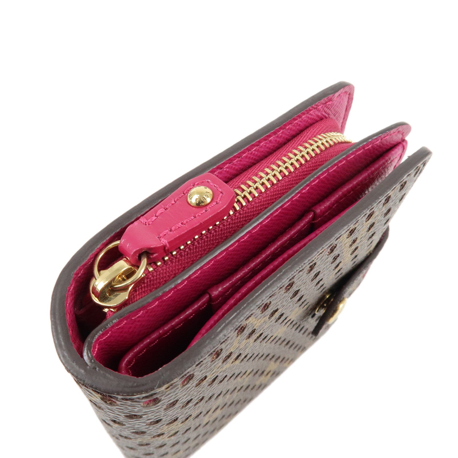 Louis Vuitton Monogram Perfor Compact Zip Bi-fold Wallet Fuchsia M95188 Used