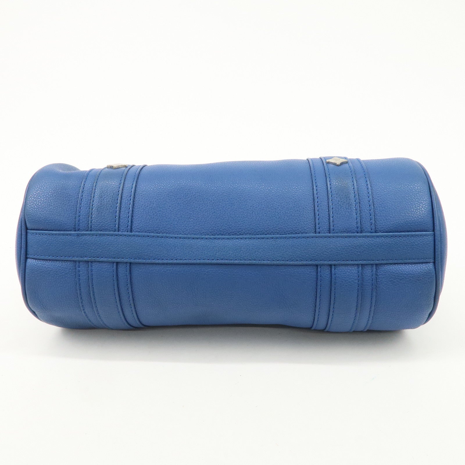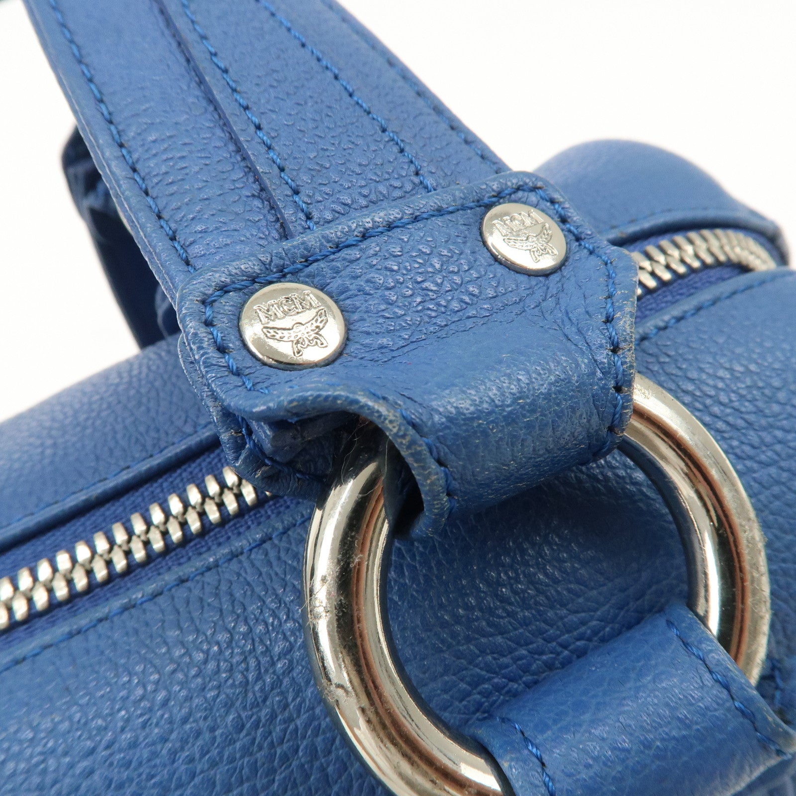 MCM Logo Leather Hand Bag Silver Studs Blue