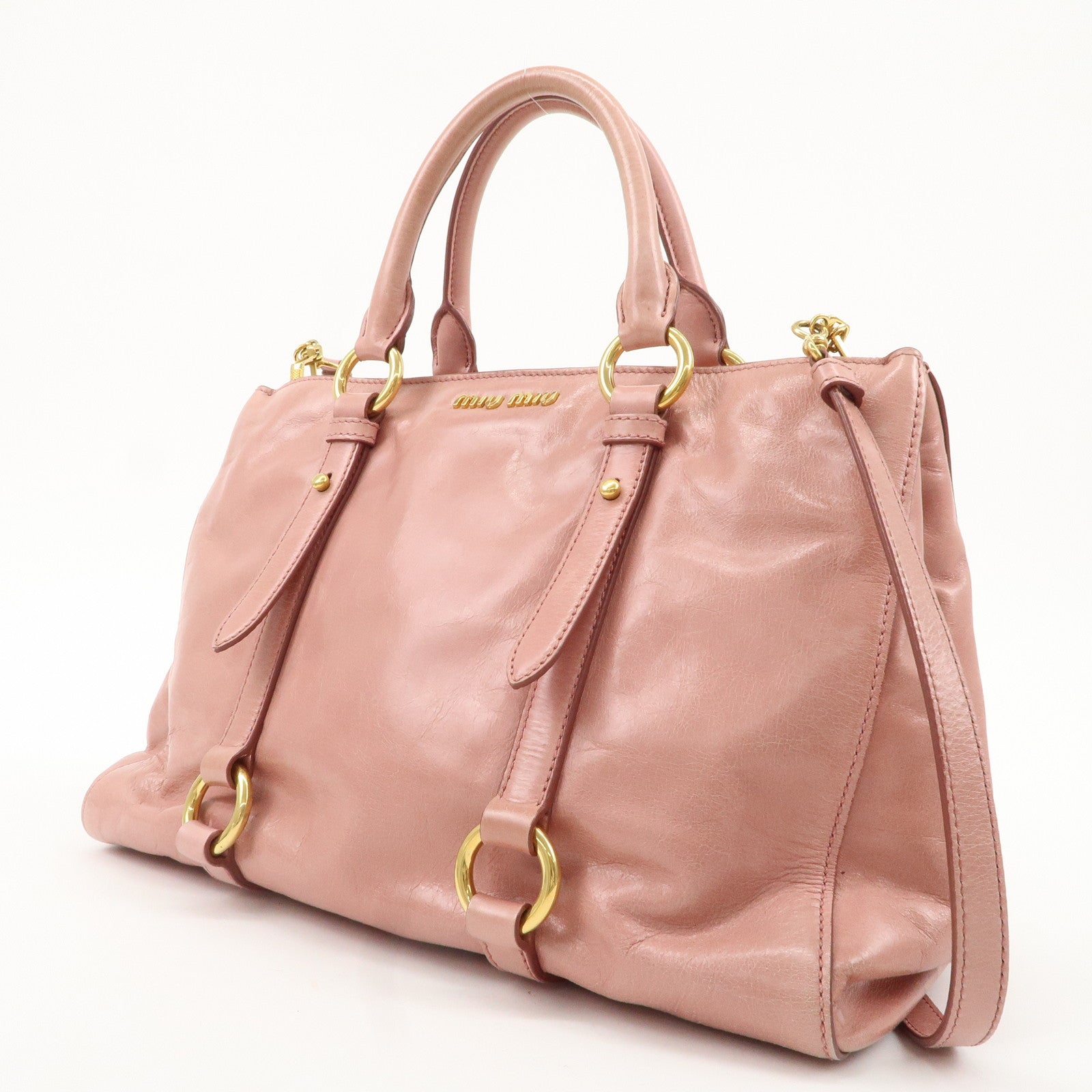 MIU MIU Leather 2 Way Hand Bag Shoulder Bag Pink RN1037 Used
