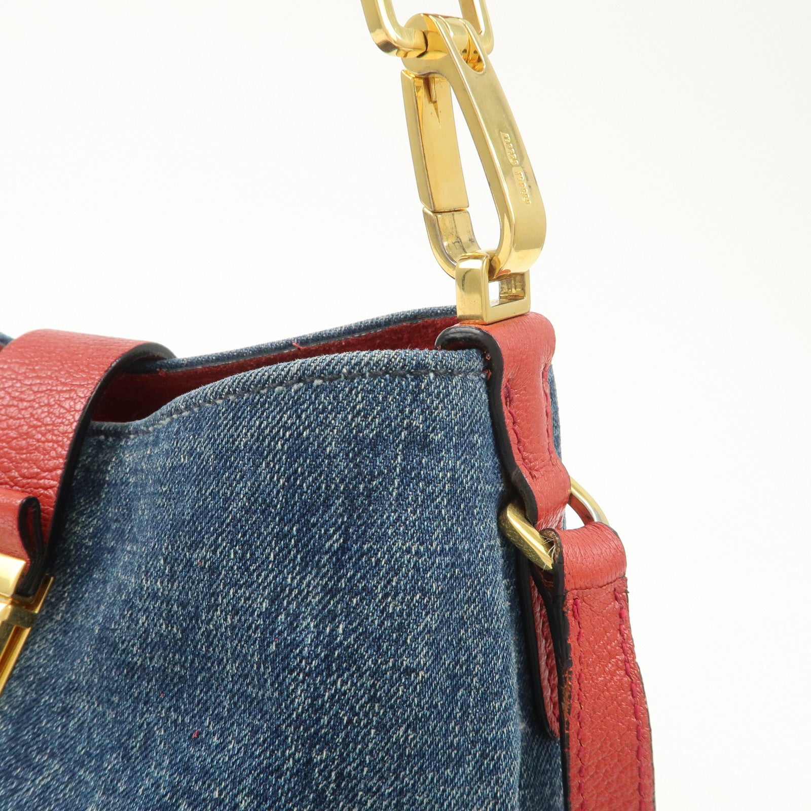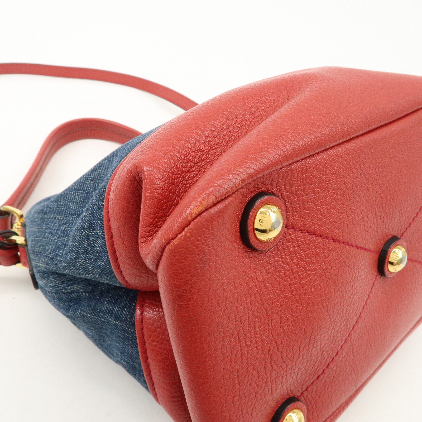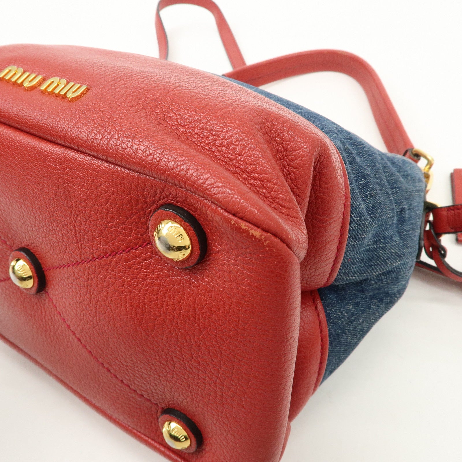 MIU MIU Madras Leather Denim 2Way Bag Shoulder Bag Red RR1951 Used