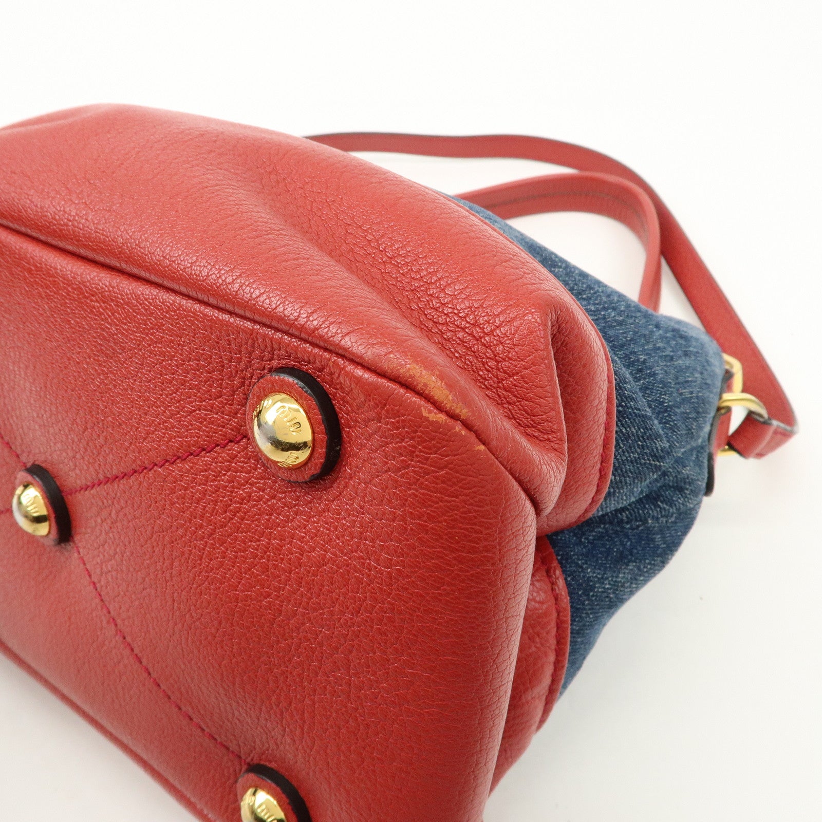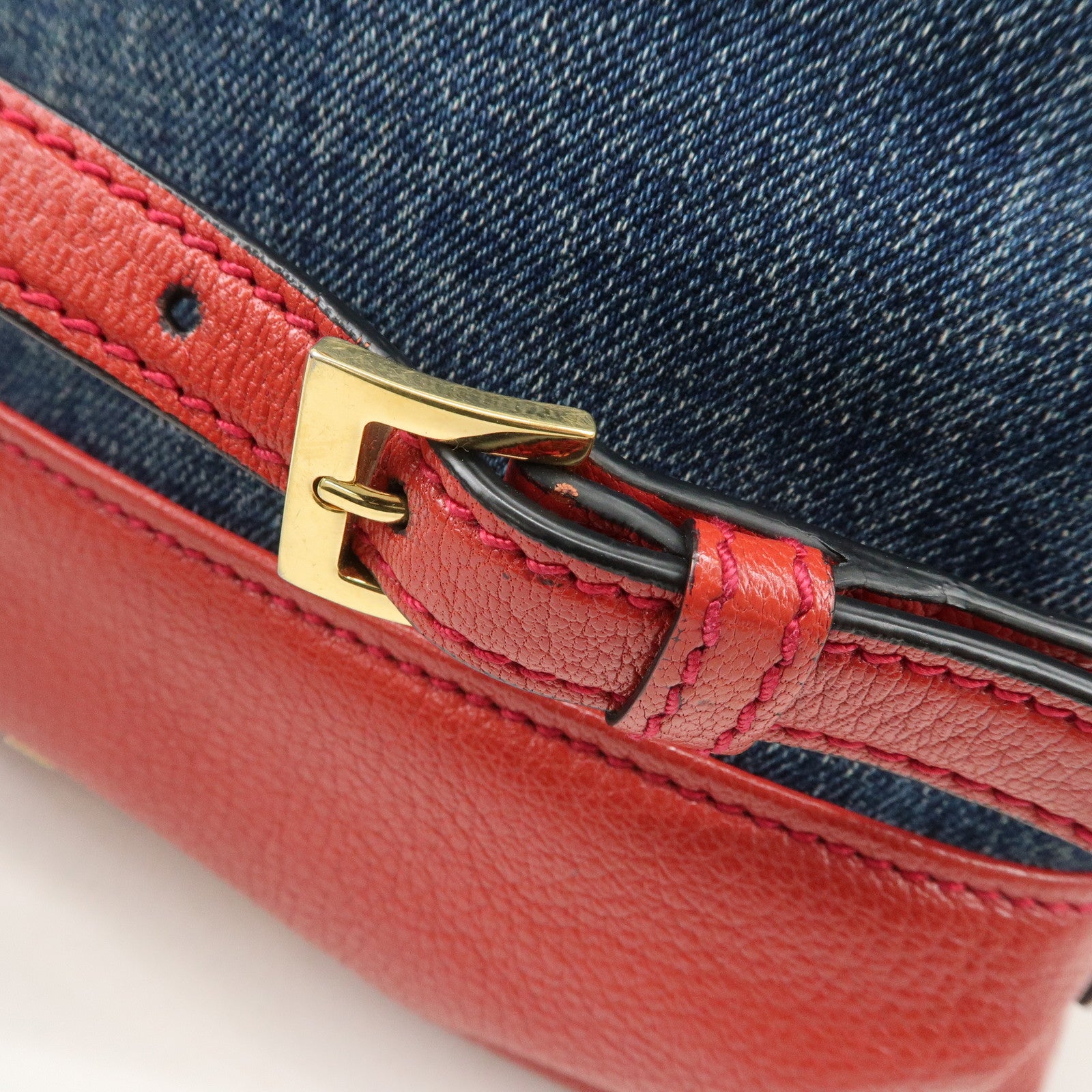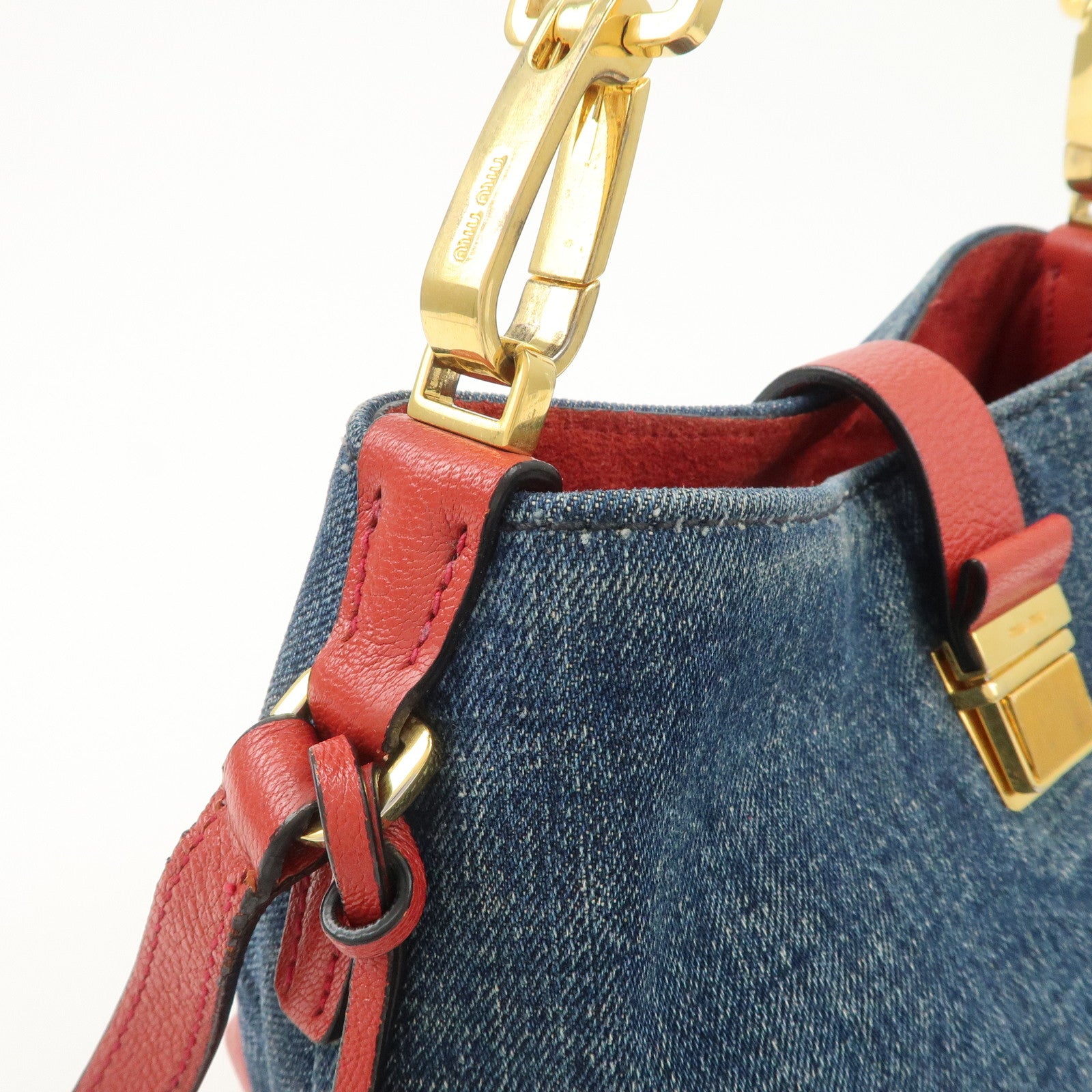 MIU MIU Madras Leather Denim 2Way Bag Shoulder Bag Red RR1951 Used