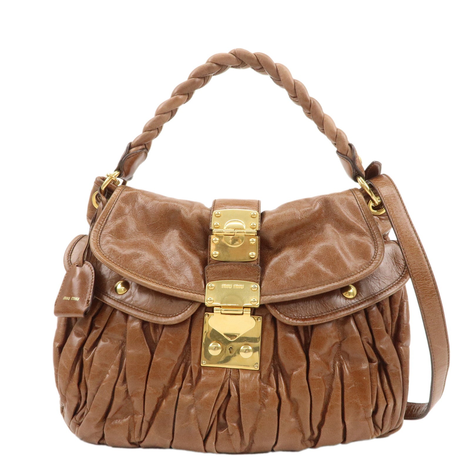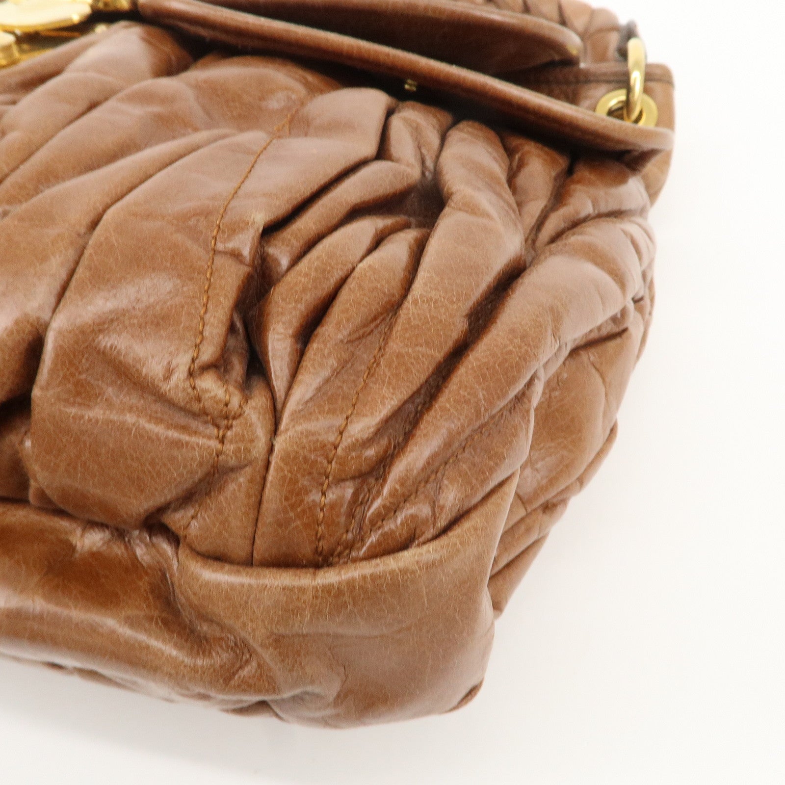 MIU MIU Matelasse Leather 2Way Bag Shoulder Bag Brown Used