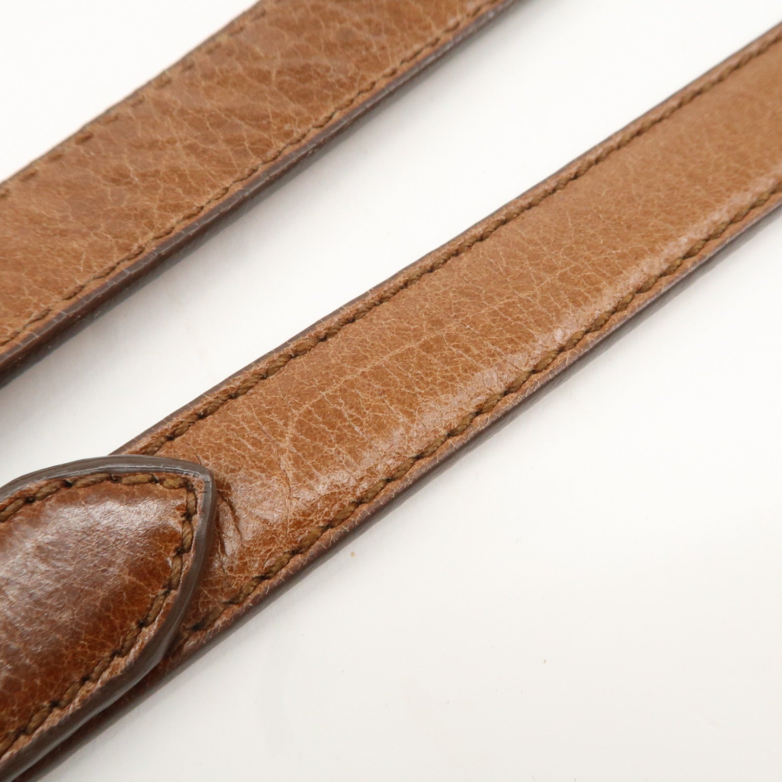 (Remarks) lost its shape, cracks, glue has come off on leather tag, some degradation on metal fittings -