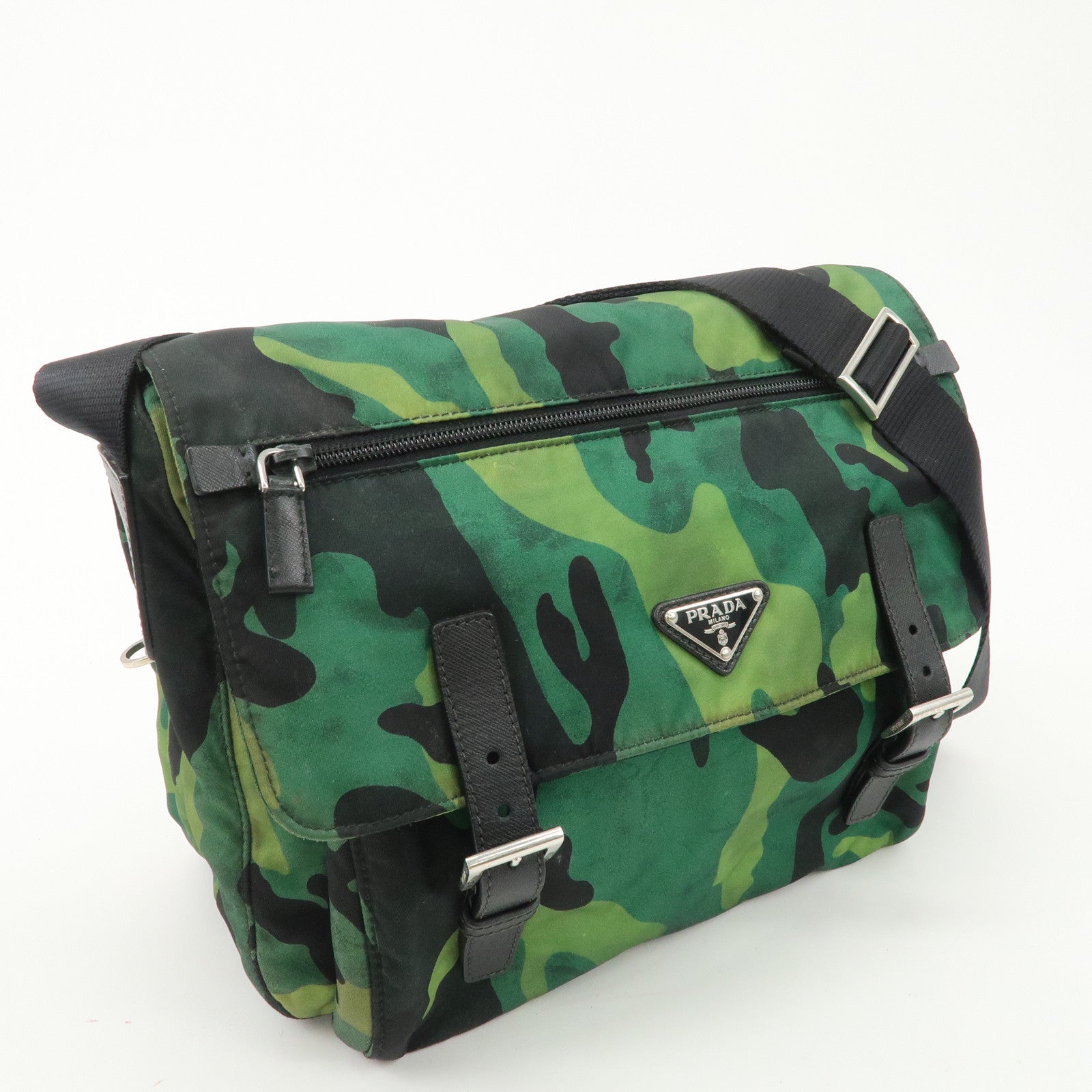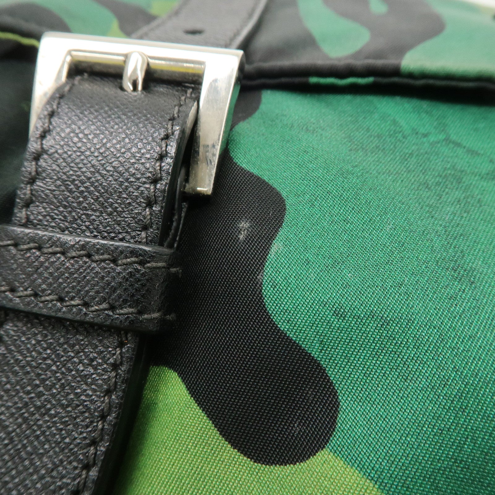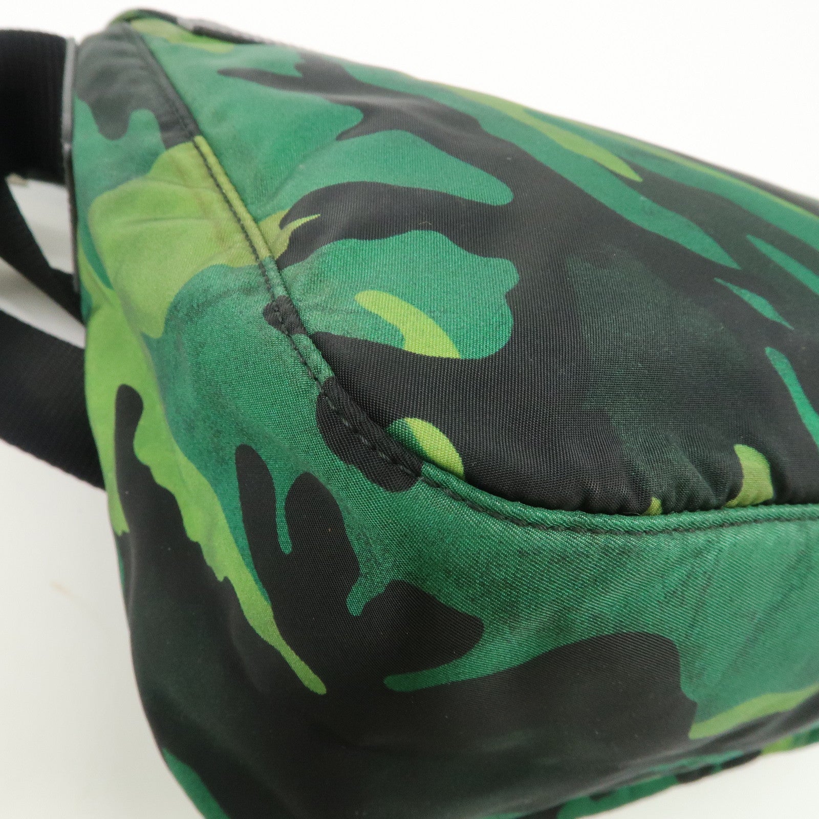 PRADA Logo Nylon Leather Camouflage Shoulder Bag Green Black Used