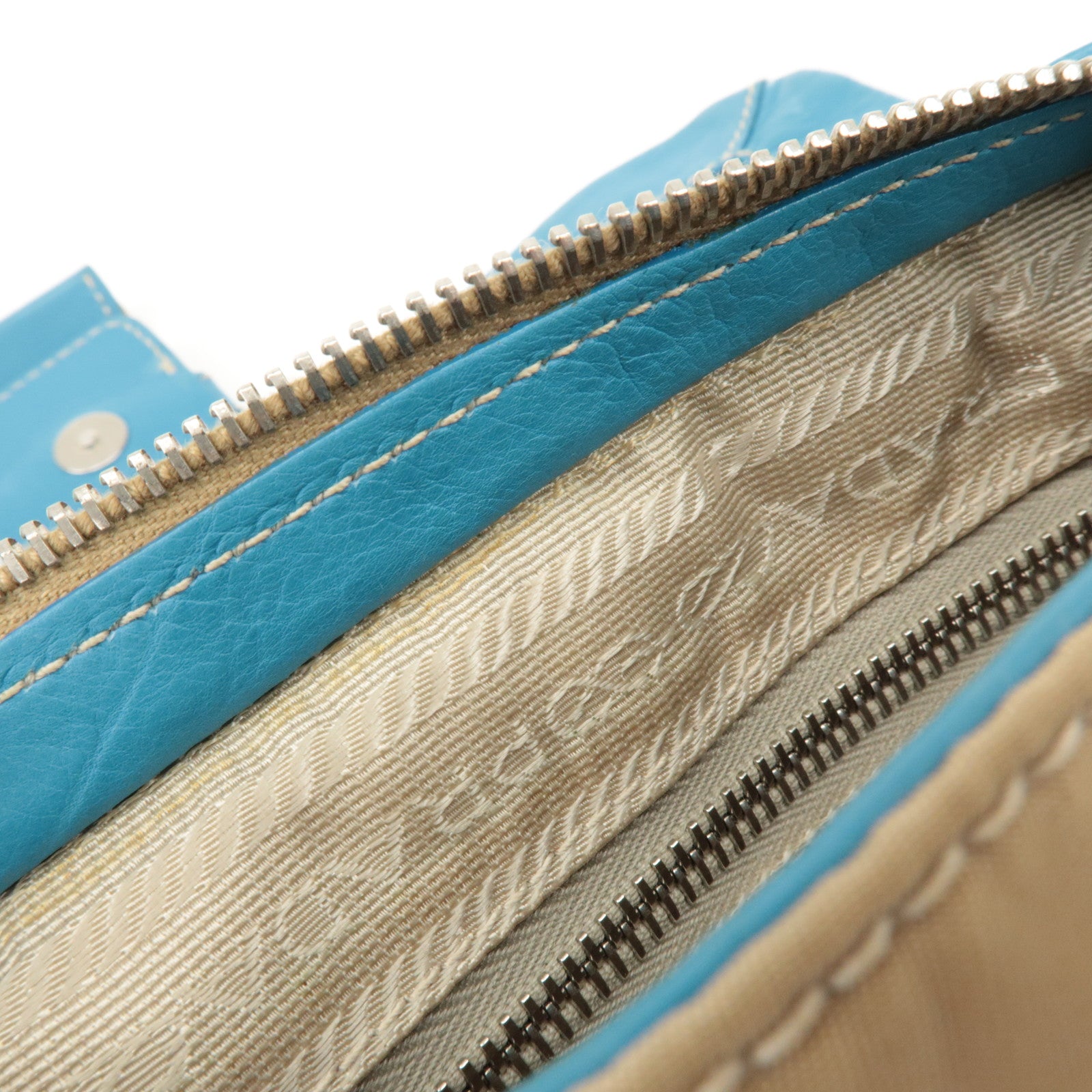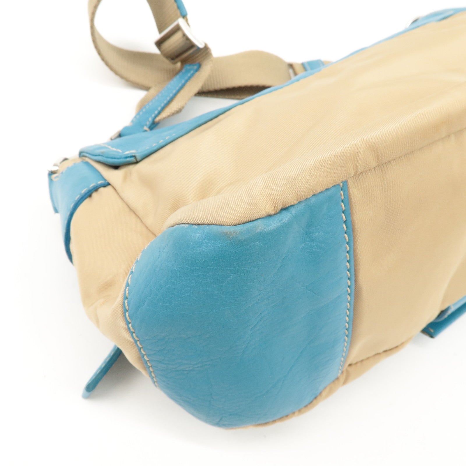 PRADA Nylon Leather Shoulder Bag Crossbody Bag Blue Beige BR2417 Used